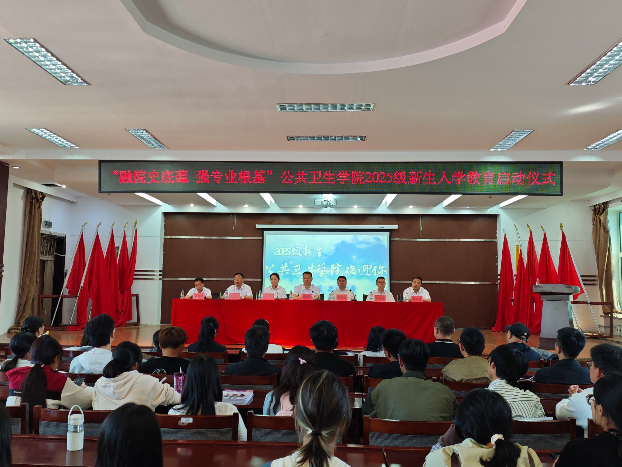为帮助2025级新生上好大学生涯“开学第一课”,筑牢专业认知根基,传承公卫学科精神,公共卫生学院于9月17日在基础楼六楼多功能厅,以“融院史底蕴 强专业根基”为核心主题,隆重举办新生入学教育启动仪式。