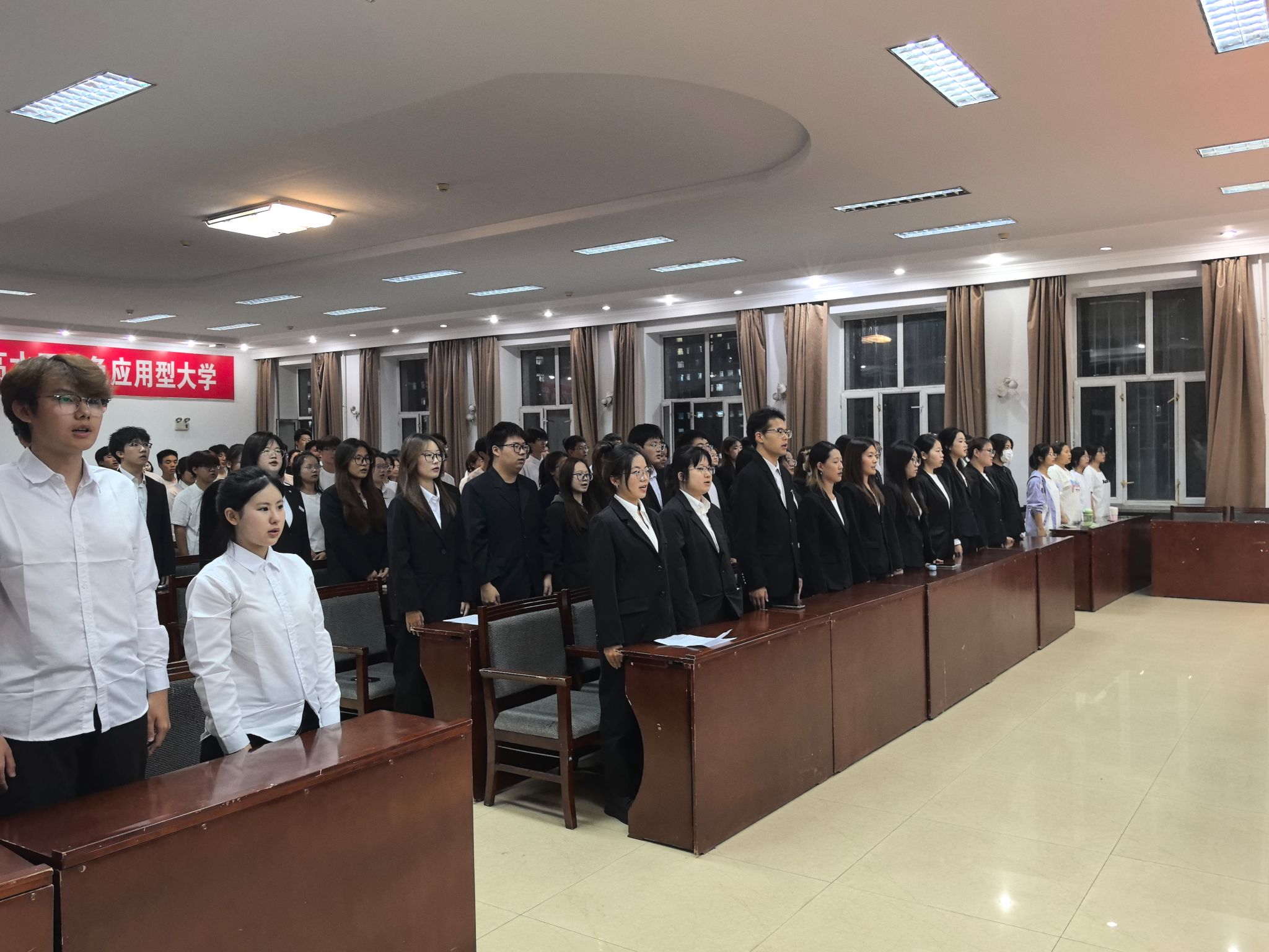 老生代表李晴结合自身在校园里的成长经历与感悟,用真挚的语言鼓励新生们珍惜大学时光,勇敢迎接挑战,积极进取,在追求卓越的道路上不断突破自我。新生代表徐嘉雪、马若楠两位同学分别登台,她们的发言朝气蓬勃、充满力量,字里行间流露出对大学生活的向往与坚定决心,引发了在场新生们的强烈共鸣,点燃了大家心中的奋斗之火。