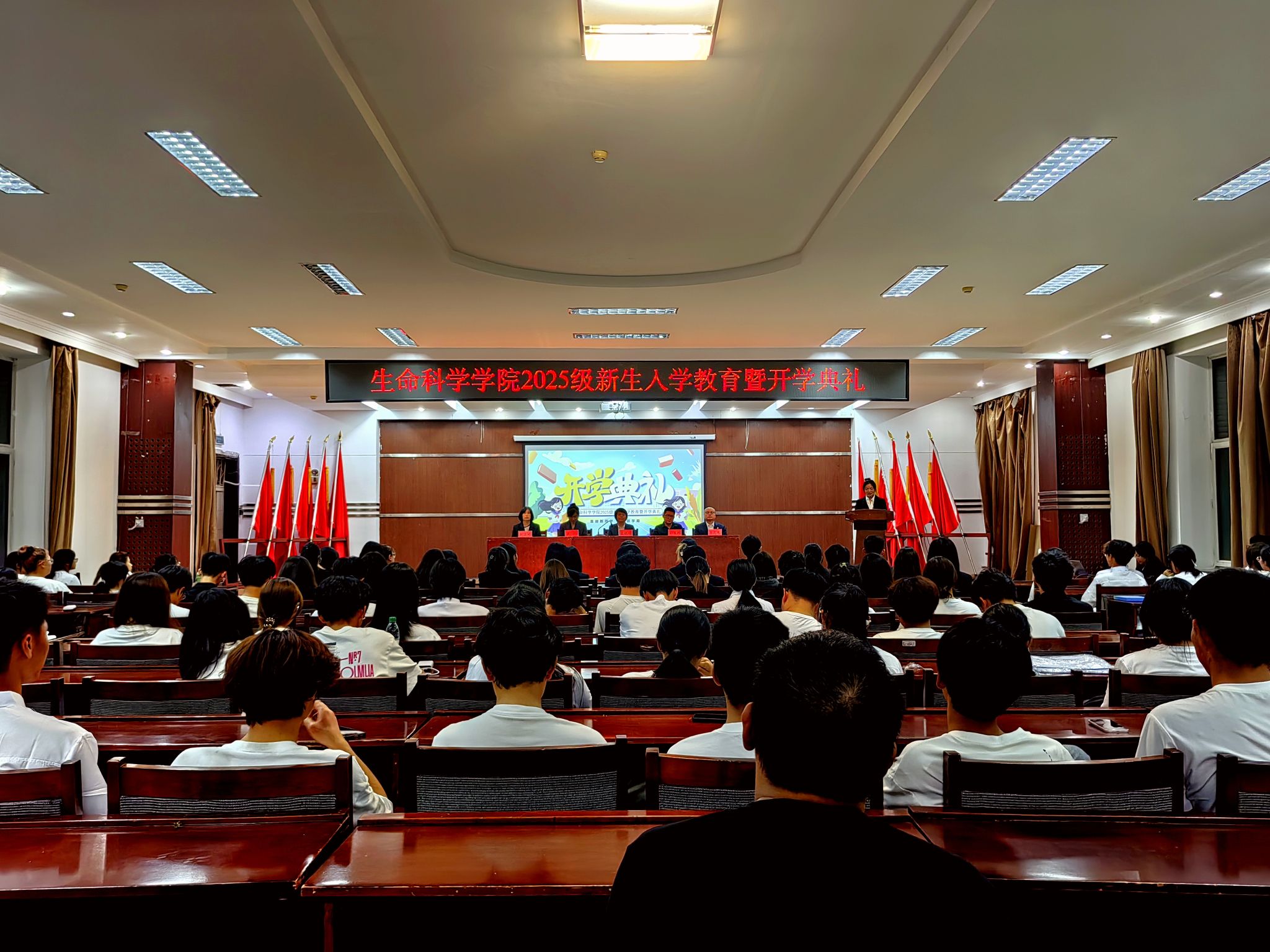 金秋送爽,硕果盈枝。在这满载希望与憧憬的美好时节,生命科学学院于9月22日举行2025级新生入学教育暨开学典礼,学院院长袁晓环,副院长孙展鹏、武艳、王志龙,办公室、学工办、实习就业科等相关人员参加典礼。2025级全体新生齐聚一堂,共赴这场意义非凡的开学之约,盛会如同一首激昂的序曲,奏响了新生们逐梦新征程的奋进乐章。