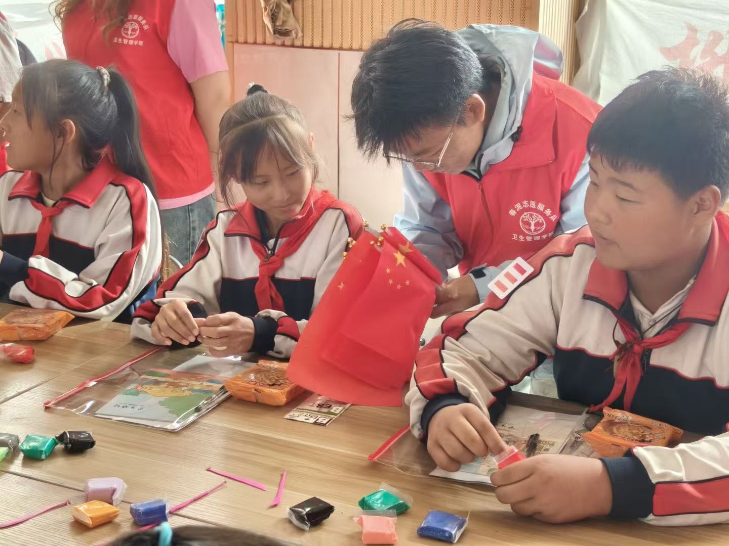 活动伊始,志愿者提出关于中秋节和国庆节的问题,小朋友们纷纷举手踊跃参与,现场气氛热烈而轻松。在志愿者的指导下,每位小朋友都亲手用橡皮泥做了一面小小的五星红旗,把对祖国的爱,都凝聚在指尖上。在课间休息时,志愿者用所学专业知识教会小朋友们眼保健操和海姆立克急救法,两名志愿者默契配合、生动演示,讲解当异物卡喉等紧急情况下的救命方法,并一对一指导,耐心解答疑问。随后,小朋友们亲手制作月饼,不仅体验了传统节日的乐趣,更懂得了分享和感恩的意义。