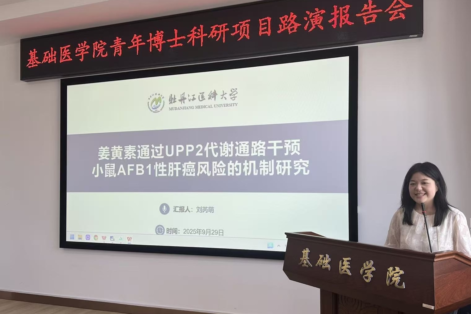 第三场活动采用“20分钟简报+圆桌研讨”形式,邀请学院新引进博士刘芮萌、田俊维与临床青年学者病理科史丽主治医师主讲。史丽医师在报告中展示靶向PPARα的激动剂可逆转Ang-Ⅱ诱导的心脏重塑,为高血压心衰的精准干预提供新思路;田俊维博士展示阿霉素通过miR-331-5p/CD44/MEK/ERK通路调控骨肉瘤恶性进程及铁死亡的作用研究;刘芮萌博士通过详实数据展示姜黄素通过UPP2代谢通路干预小鼠AFB1性肝癌风险的机制研究。博士路演将PPARα的精准靶向、铁死亡的巧妙诱导与姜黄素的天然智慧,共同注入高血压、骨肉瘤与肝癌的下一轮攻克,携手把实验室里的“首次发现”转化为病床边的“再次新生”!