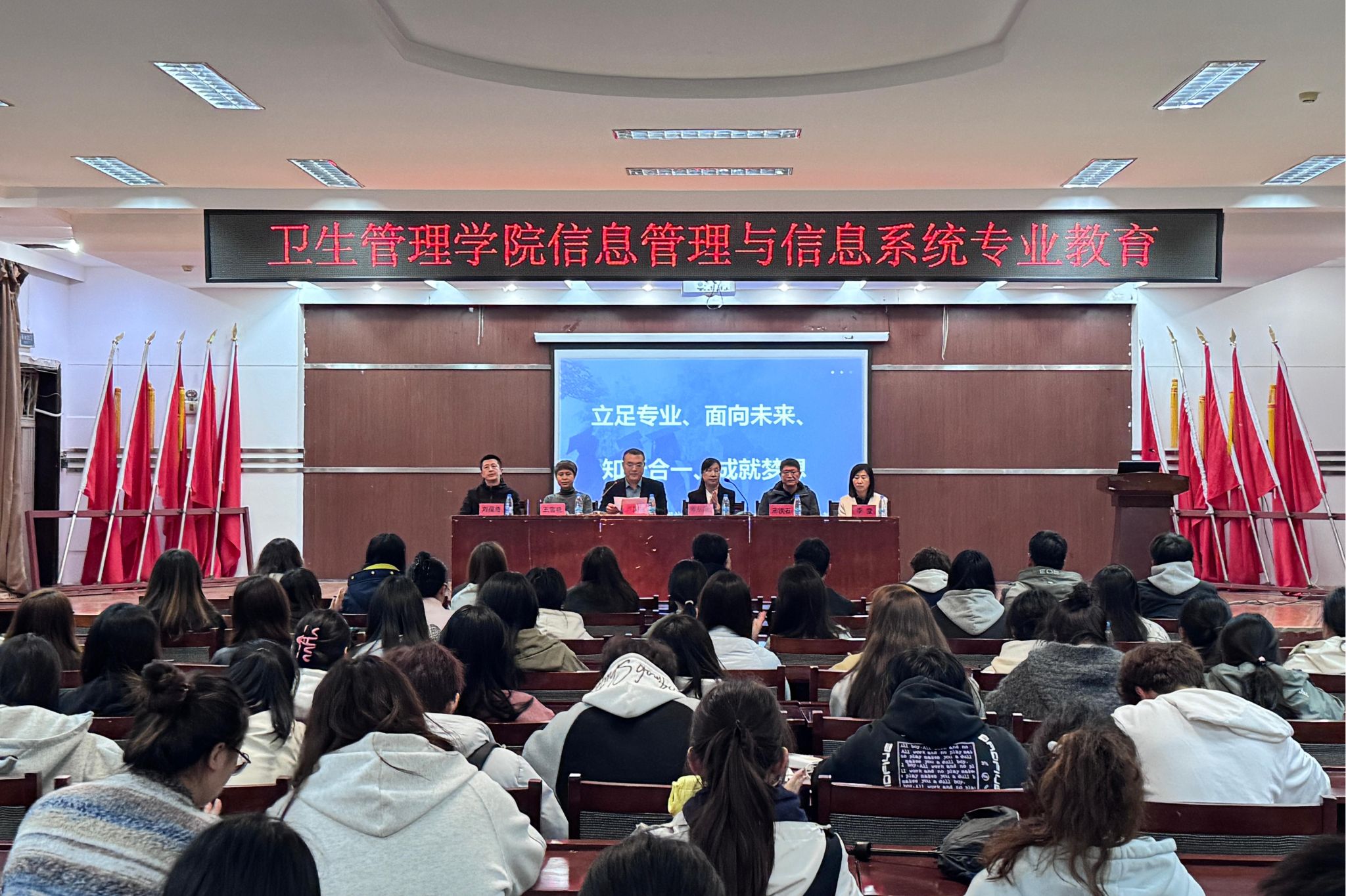 卫生管理学院院长师东菊强调信息管理与信息系统专业在医疗健康领域的重要性,鼓励同学们把握数字化发展机遇,努力成为兼具信息技术与管理能力的复合型人才。专业负责人卢国强详细介绍了专业培养方案、课程体系设置、实践教学安排及专业发展方向、就业前景,为同学们明确了学习目标。