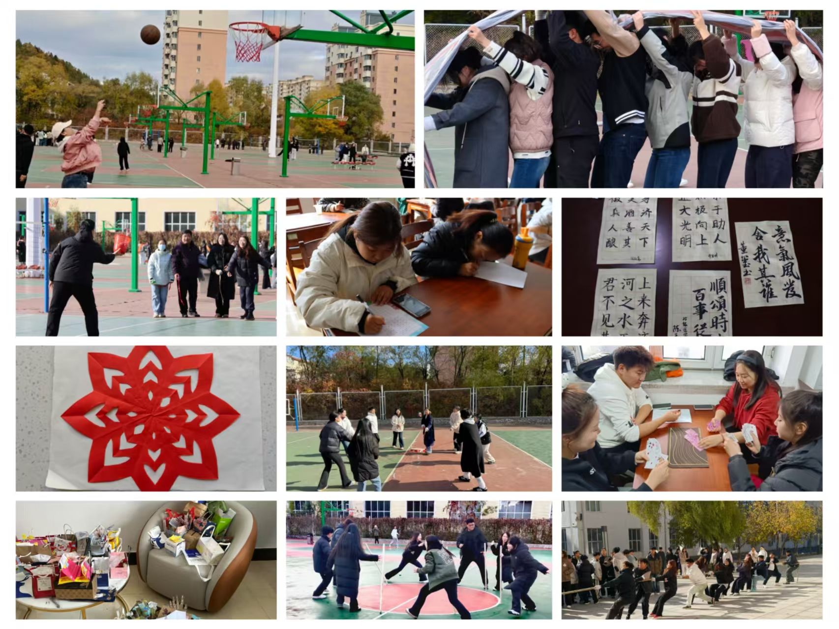 本次文化节活动设计紧密围绕德智体美劳“五育融合”理念,包括美育文化类活动“墨染千秋纸,笔传万古心”书法比赛、“纸韵传情,艺绘青春”线上剪纸比赛与“巧手焕新,寓见美好”创意比拼活动;体育拓展类“凝心聚力,共筑团队”木棍接力协作挑战赛、“一株承众志,万里践初心”U型管运球竞速赛、“沙包掷趣,袋鼠跃力”趣味闯关、“跃动投锋,篮影逐光”篮球赛以及“青春寓你,欢乐棋牌”智力竞技、“公寓凝心意,校园满生机”风火轮团体比拼、“同心协力,鼓动未来”集体颠球赛和“力拔山河志,绳系同窗情”拔河比赛活动,内容丰富多样。