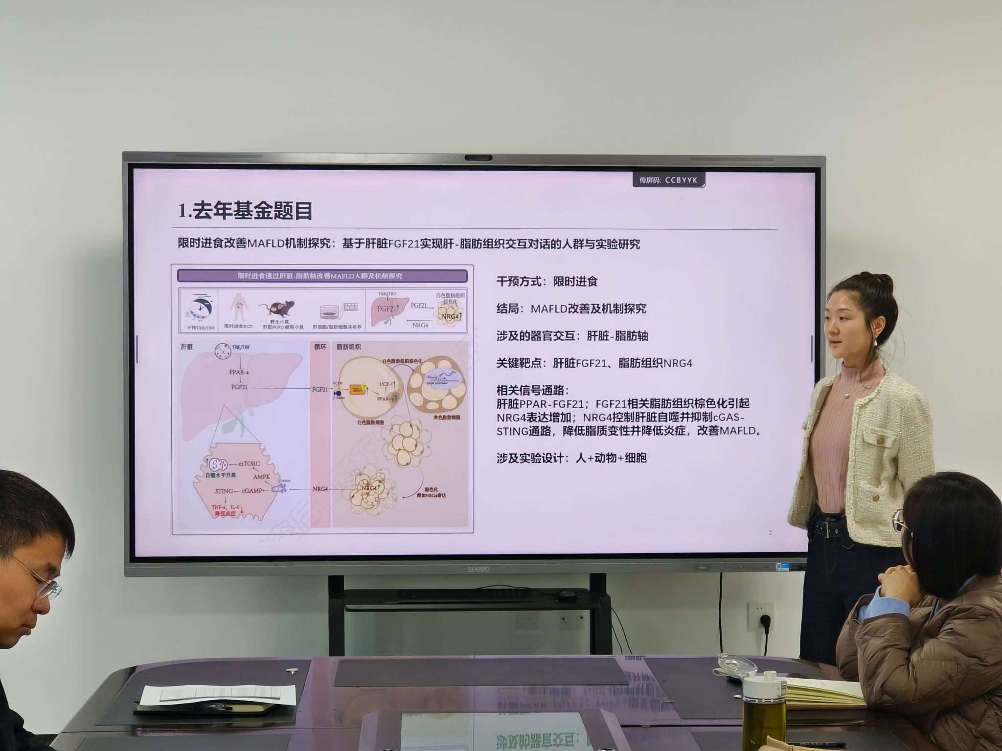 青年教师林宏坤、李晨博士依次汇报项目立项背景、研究内容、研究方案、研究基础以及核心创新点。