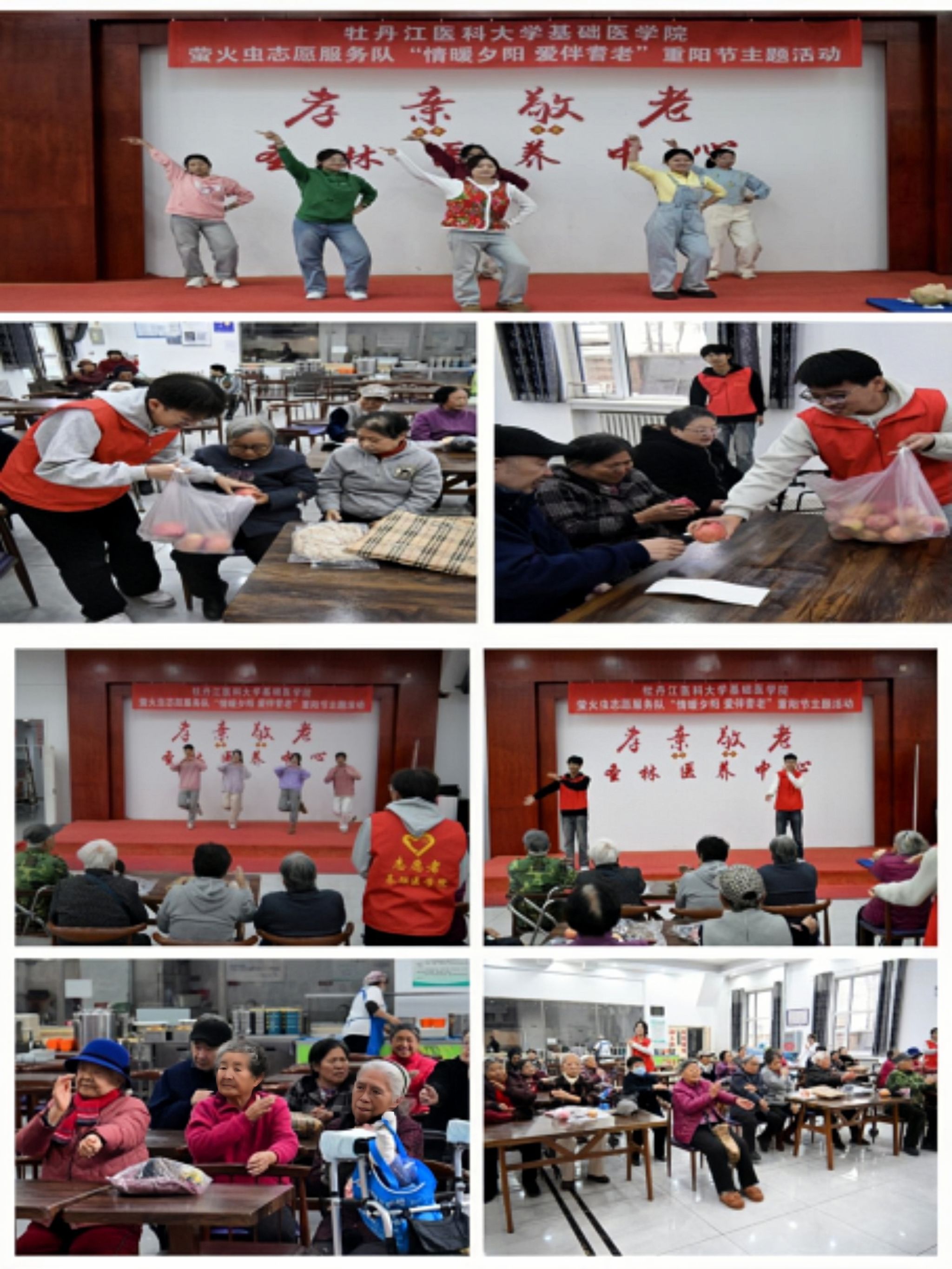 为弘扬中华优秀传统文化,向老人们传递社会温情,同时让他们更好地对健康知识进行了解。牡丹江医科大学基础医学院萤火虫志愿服务队于2025年10月28日在圣林老年修养中心开展“情暖重阳,爱伴耆年”主题活动。