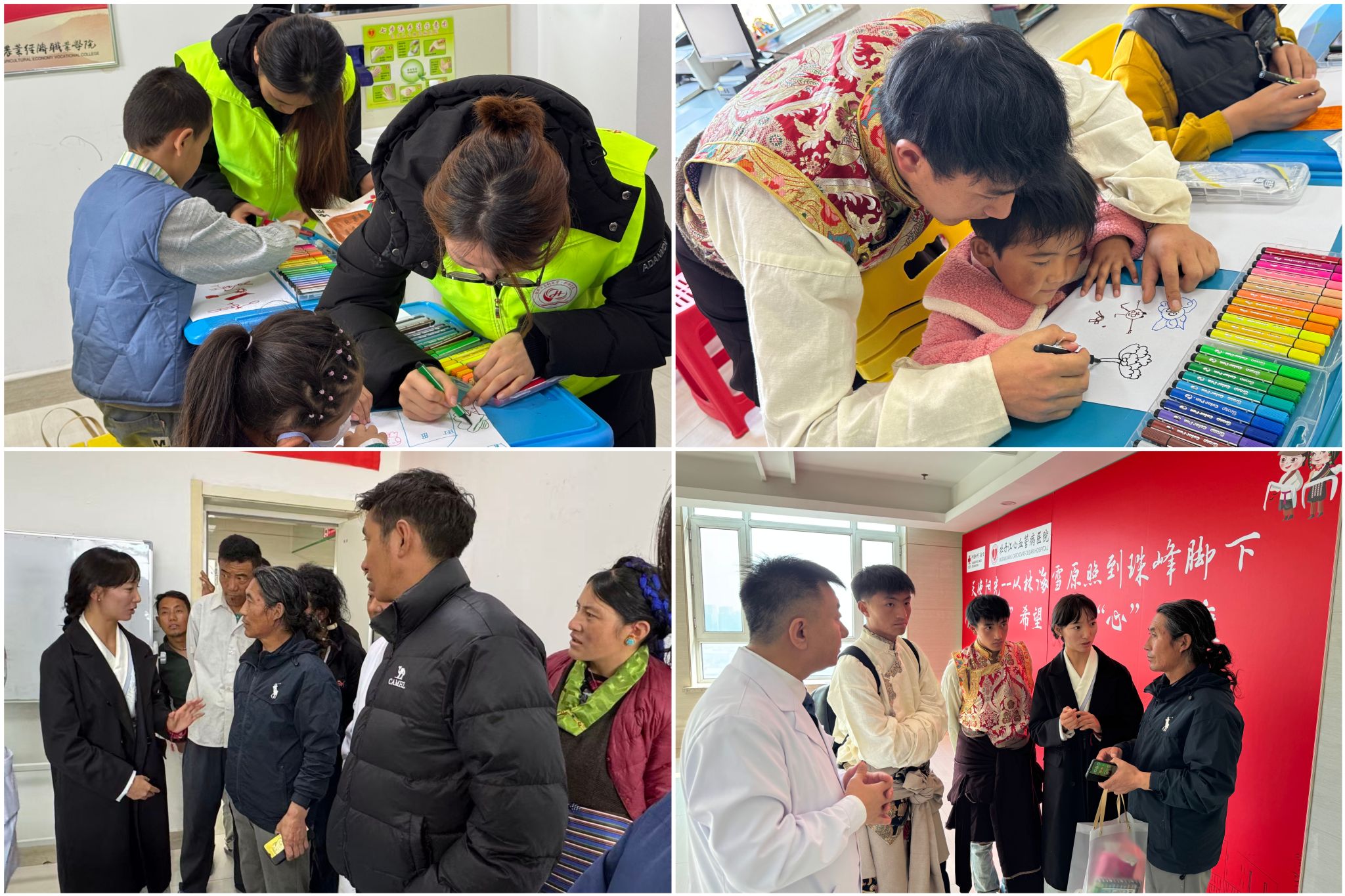 活动当天,志愿者们一进病区,便被患儿们天真烂漫的笑脸所感染,将精心准备的文具、玩偶、儿童绘本等礼物递到孩子手中,用温柔的话语与他们互动;藏族大学生充分发挥语言优势,不仅化身医患沟通的“桥梁”,协助医护人员向家长精准翻译病情注意事项、解答疑问,还结合自身经历耐心安抚家长情绪。一句句真挚的祝福瞬间拉近心灵距离,让远离故土的家庭在异乡感受到“家”的暖意。患儿家长频频点头致谢,病房里流淌的真挚情感,生动诠释了各民族间的深厚情谊。