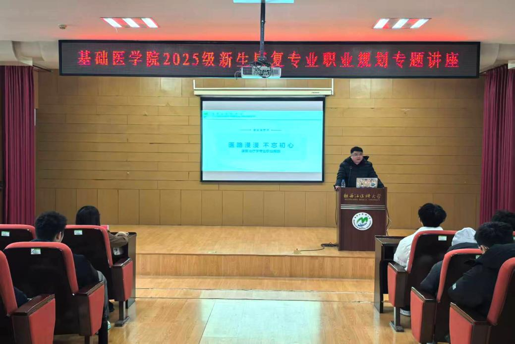 为帮助新生明晰职业发展路径,筑牢专业成长根基,在康复医学行业蓬勃发展的时代背景下,基础医学院学生社区于11月29日在图书馆四楼求是讲坛为2025级康复治疗专业新生举办职业规划专题讲座,2025级康复专业全体新生参与。