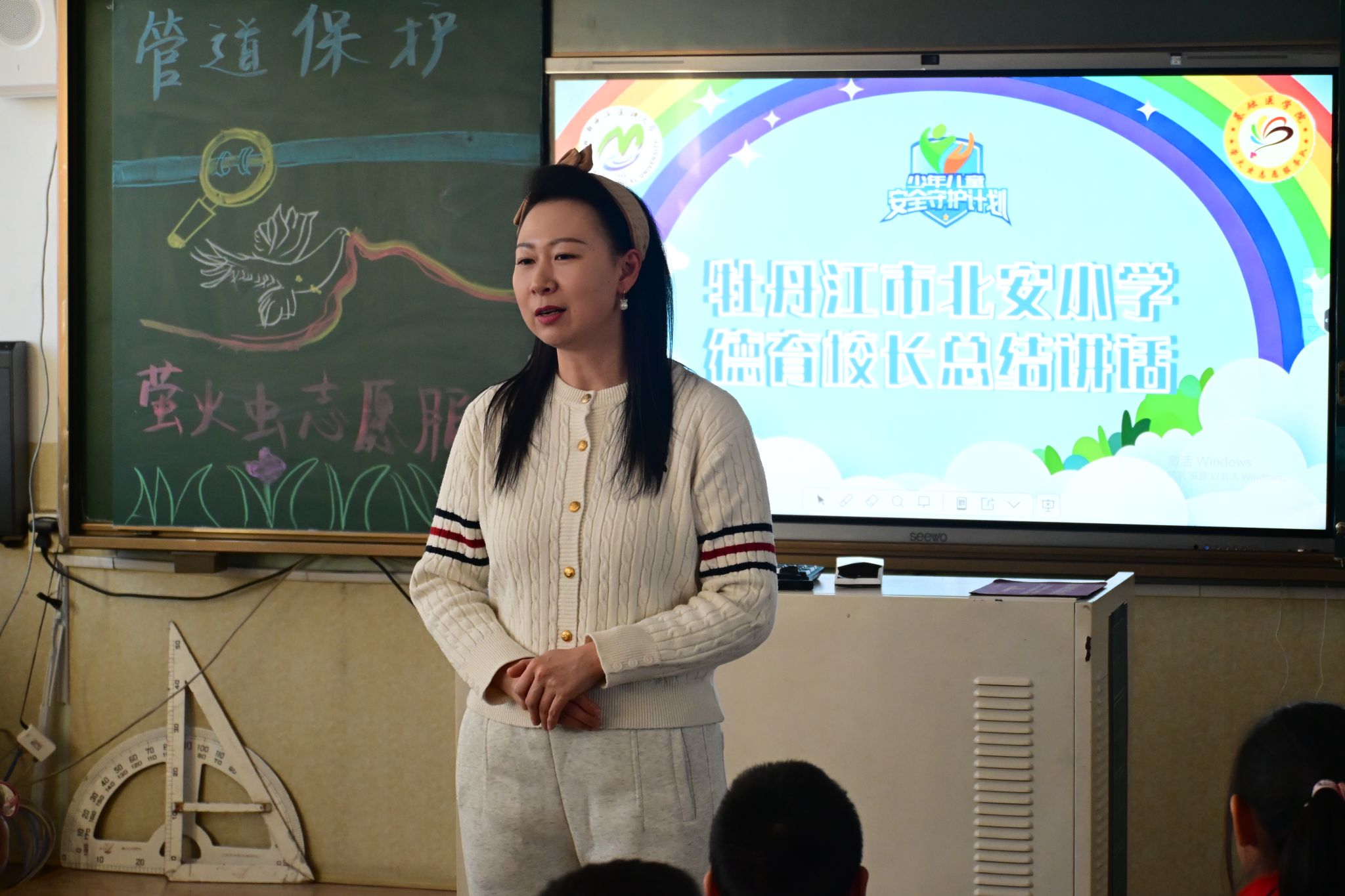 北安小学德育校长对志愿服务队的到来表示感谢,她总结指出:“管道安全是校园安全教育的重要一课,本次宣讲既丰富了安全知识储备,也培养了社会责任感。学校将持续深化安全教育,携手志愿力量为孩子们筑牢安全防线。”萤火虫志愿服务队指导教师唐懿鸣也向同学们表示:“未来,志愿服务队将继续走进校园,发挥专业优势传递安全知识,用萤火微光汇聚安全守护的力量,也让队员在实践中践行志愿精神。同时也欢迎同学们到牡丹江医科大学近距离感受医学的魅力。”