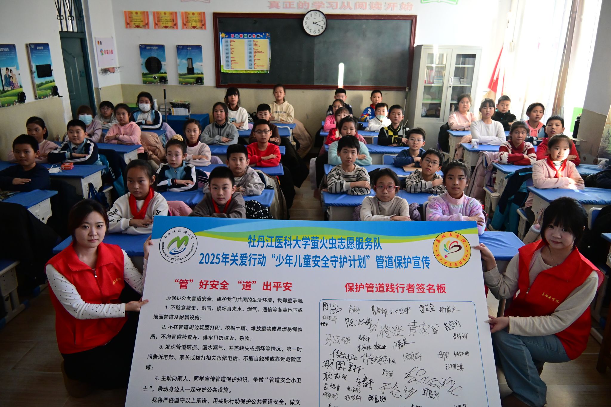 为深入学习贯彻习近平总书记关于青年工作的重要思想和关于志愿服务的系列重要指示批示精神,贯彻落实习近平总书记关于国家能源安全的重要论述。牡丹江医科大学基础医学院萤火虫志愿服务队积极响应团中央以及团省委号召,在学校团委的大力支持下,经过申报再次成功入选2025年关爱行动“少年儿童安全守护计划”管道保护宣传志愿服务团队。2025年12月12日,牡丹江医科大学萤火虫志愿服务队在指导教师唐懿鸣、队长李淇的带领下走进北安小学,开展主题为“‘管’好安全 ‘道’出平安”的管道保护宣传志愿服务活动。
