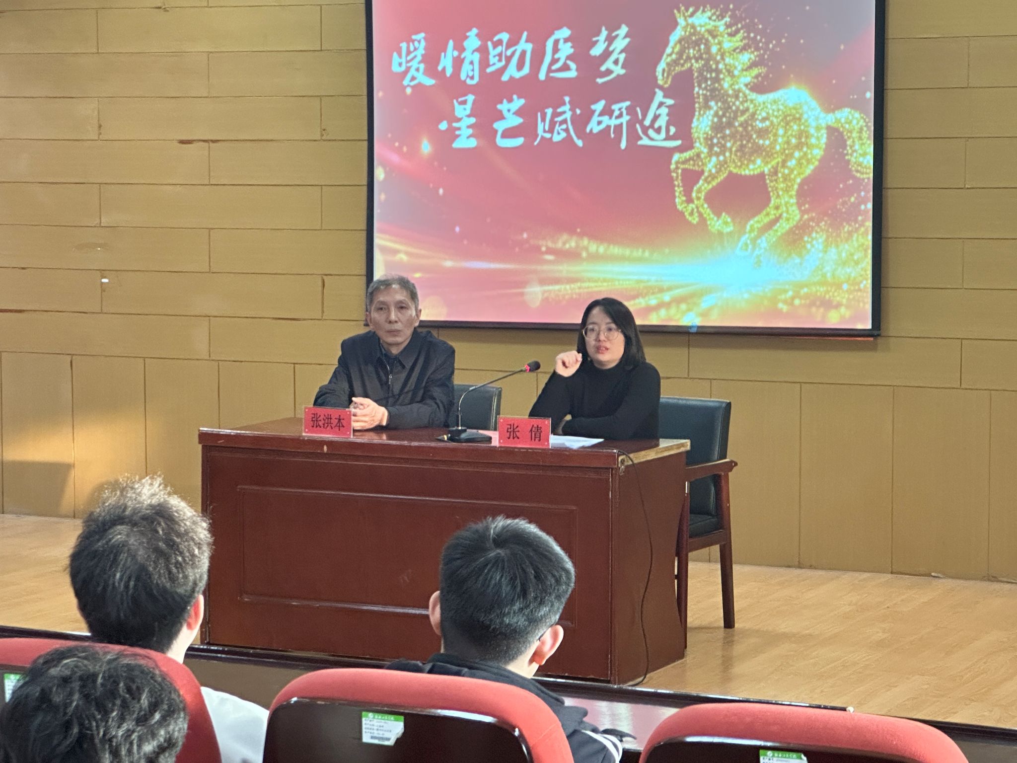 活动中,张洪本以“大家长”身份与学子亲切交流,叮嘱大家冲刺阶段既要专注复习,更要保障饮食、保暖与睡眠,筑牢高效备考基础。他将考研比作“大型临床技能考核”,鼓励学子正视积累、放下焦虑,以平常心应考,以进取心应战,稳定发挥所学。同时明确学校与老师是坚实后盾,期盼大家全力冲刺、斩获佳绩。现场,张洪本为学子发放包含饼干、橙子、苹果、“薯愿”“德芙”及特色钥匙扣的“考研加油包”,寓意“心想事成”,温馨氛围驱散了冬日寒意。