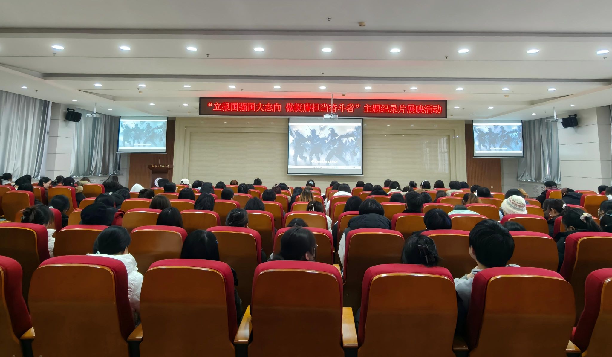为深入落实“立报国强国大志向,做挺膺担当奋斗者”宣传教育活动,激励青年学生铭记历史、勇担使命,学校于12月17日、19日在“一站式”学生社区,成功举办主题纪录片展映活动,通过鲜活的历史画面生动弘扬伟大抗战精神,在校园内营造了浓厚的爱国主义育人氛围,有效引导广大学子厚植家国情怀、强化责任担当,为青春征程注入强劲奋进力量。