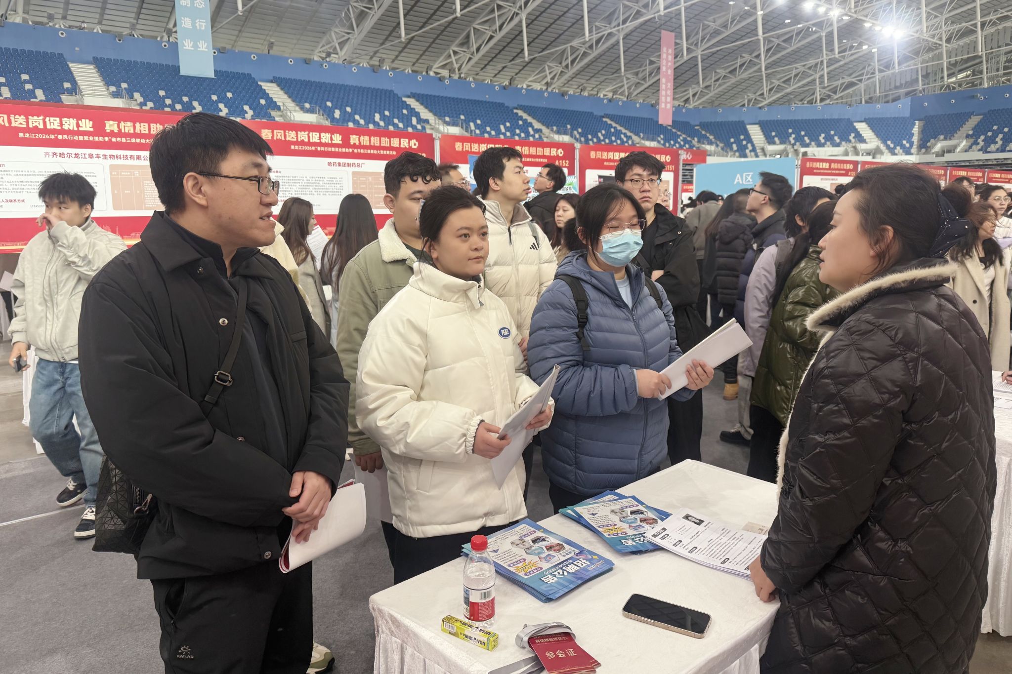招聘会现场,刘磊结合管理学院专业特点,为学生有针对性地推送相关岗位信息及对应展位位置,引导学生根据自身求职方向筛选岗位,提升简历投递的针对性与效率。本次招聘会,学院与黑龙江极兔供应链有限公司、天府盛国际物流有限责任公司、顺丰速运有限公司、黑龙江省国宾酒店管理有限公司等企业进行了对接,与企业 HR 深入交流,探讨岗位要求、职业发展、薪资福利等问题。企业工作人员也同步介绍公司概况和人才需求,部分企业还针对毕业生能力开展初次面试,高效推进人才匹配。
