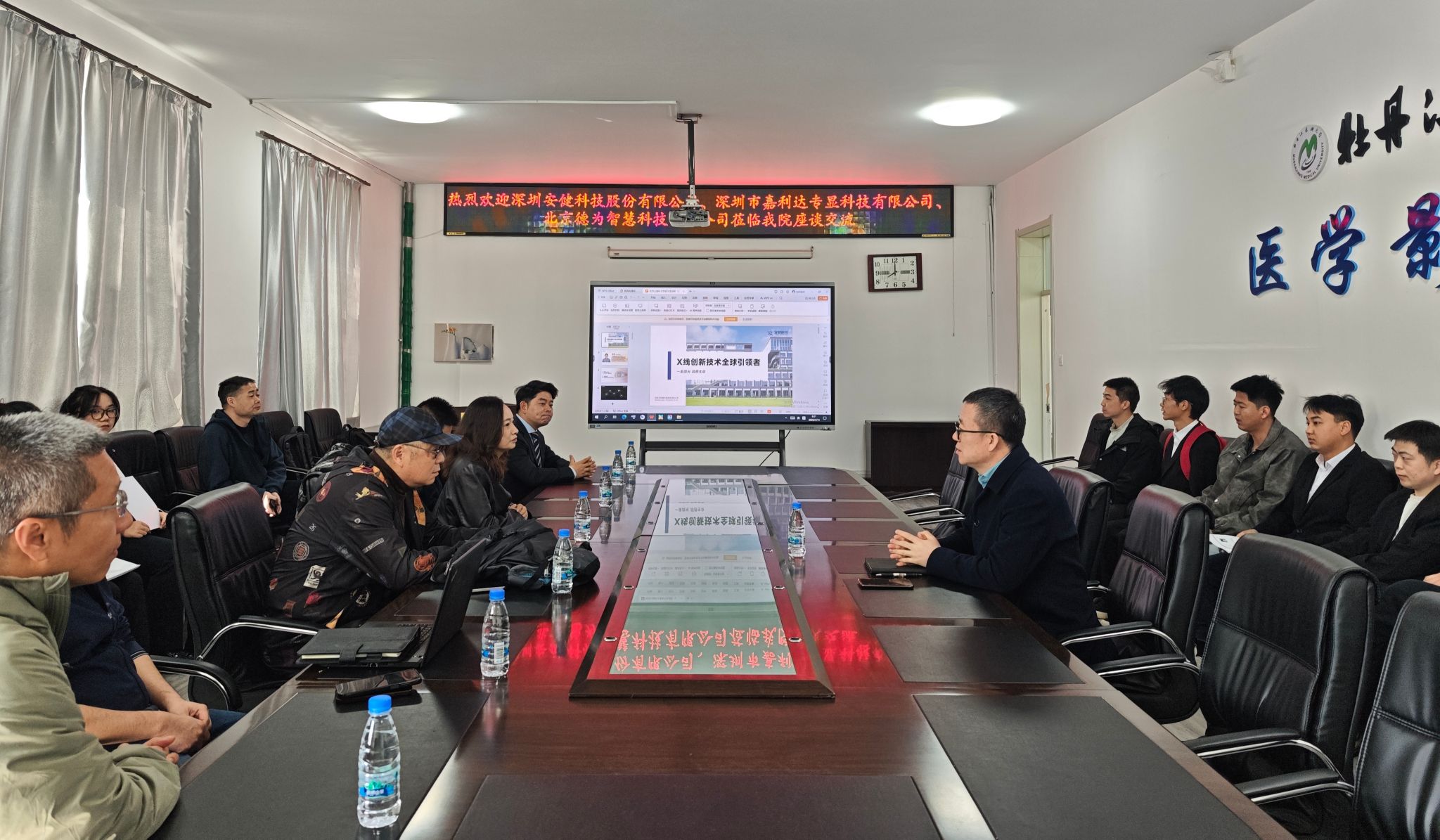 为深入推进访企拓岗专项行动,精准对接医疗行业人才需求,切实拓宽毕业生就业渠道。4月14日上午,深圳安健科技股份有限公司、深圳市嘉利达专显科技有限公司、北京德为智慧科技有限公司相关负责人走进医学影像学院,开展校企座谈交流暨实习就业选聘活动。医学影像学院院长于广浩、辅导员李英翰、邹佩实及2023级智能影像工程专业学生参与本次活动。