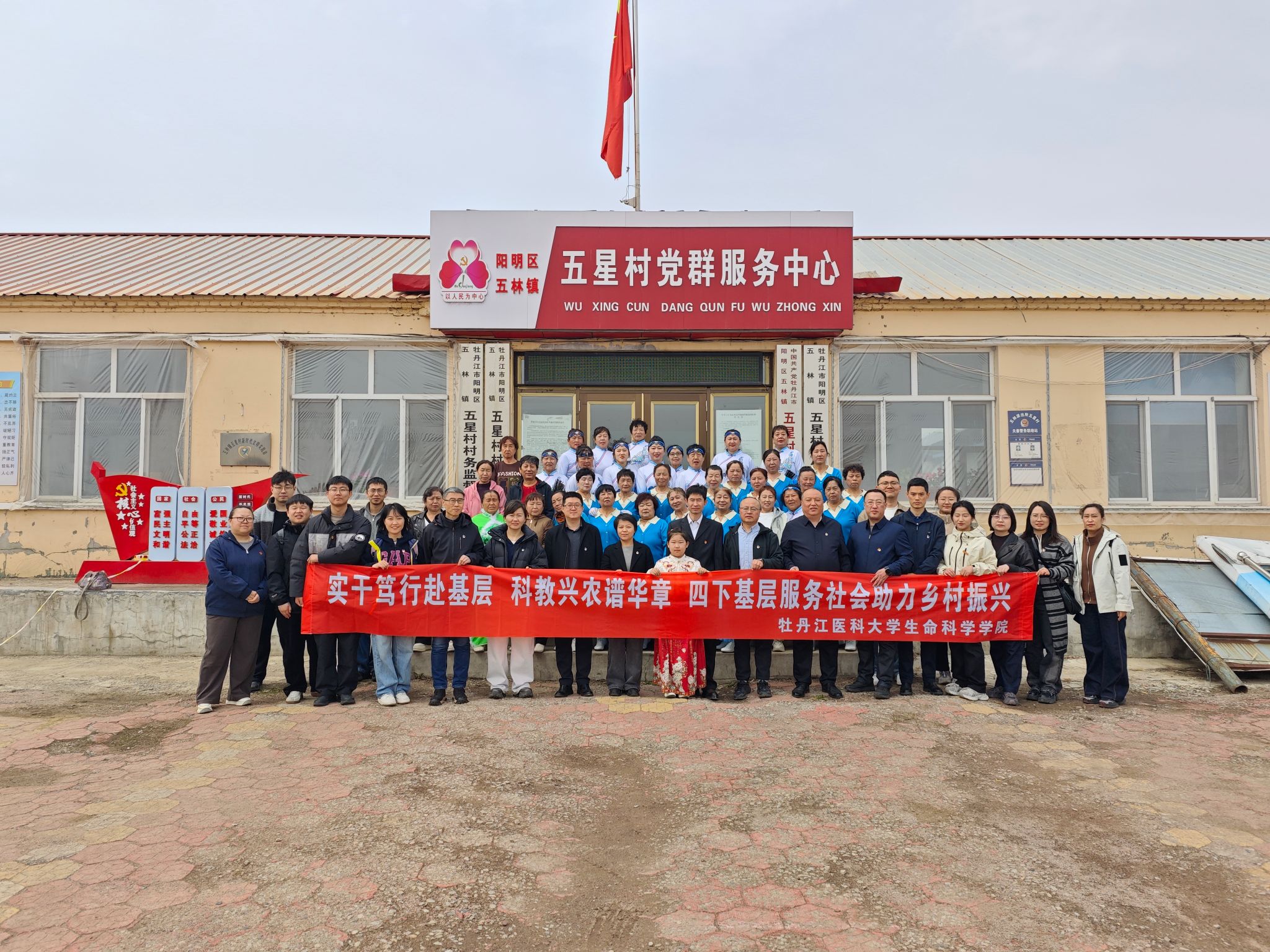 为深入贯彻乡村振兴战略,充分发挥高校党建引领作用与人才智力优势。2026年4月25日,学校生命科学学院以“党建领航强根基、博士赋能促振兴”为主题,组织党员师生、博士专家团赴牡丹江市阳明区五林镇五星村,开展服务社会暨党支部主题党日活动,以党建结对、科教赋能、文化惠民、爱心助农,为乡村振兴注入高校力量。