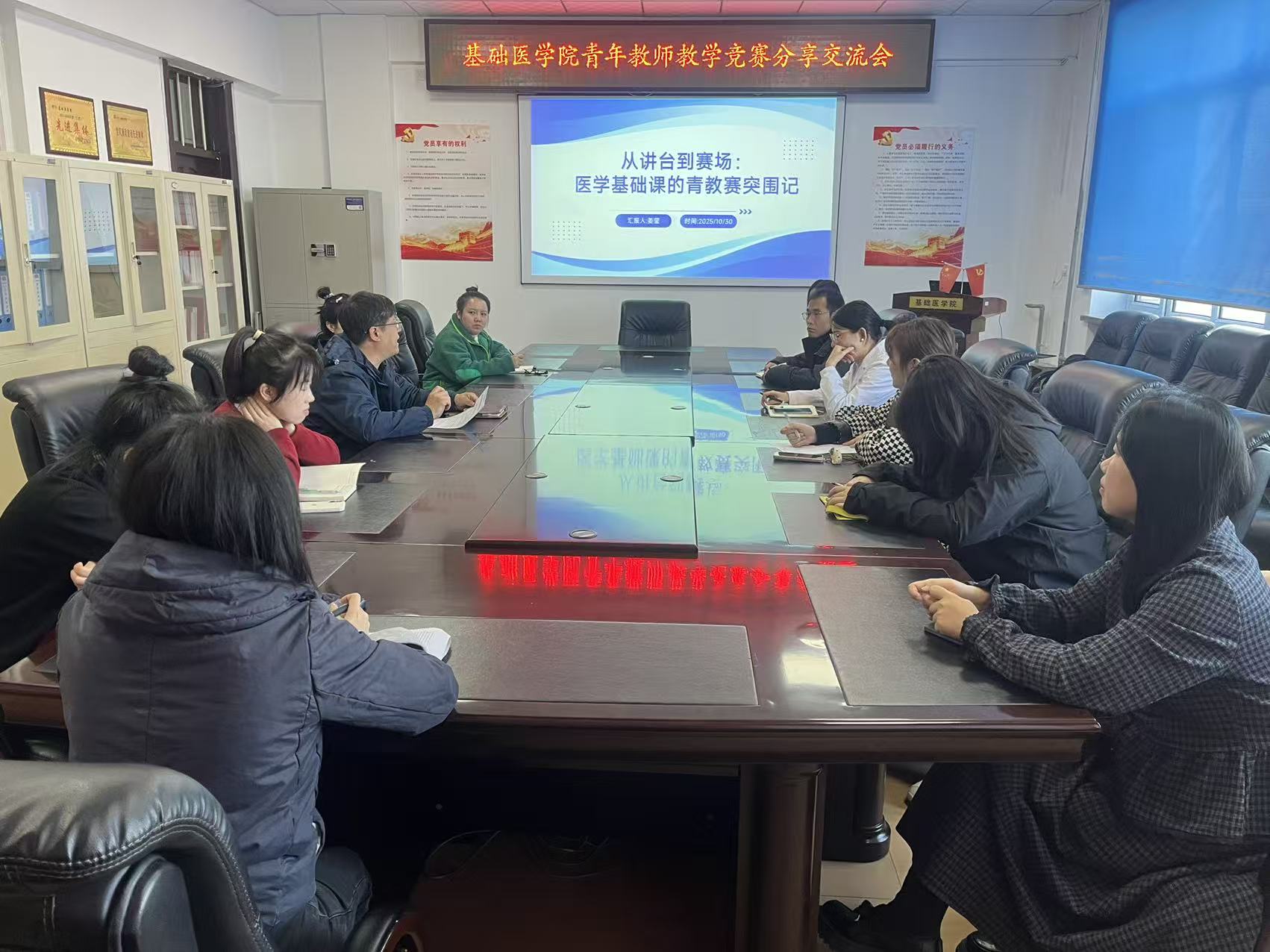 为提升青年教师教学能力,助力青年教师成长,基础医学院于2025年10月30日下午两点在基础楼8楼会议室举办青年教师教学竞赛经验交流会,特邀生物化学与分子生物学教研室姜莹老师,为年轻教师们传授宝贵的参赛经验。会议由基础医学院副院长冯华主持。 会上,姜莹结合自身参赛经历,从内容设计、备赛节奏、评分拆解和现场瞬间四个维度,系统梳理了青教赛的备赛要点和参赛策略。她首先强调了教学内容设计在竞赛中的核心地位,...