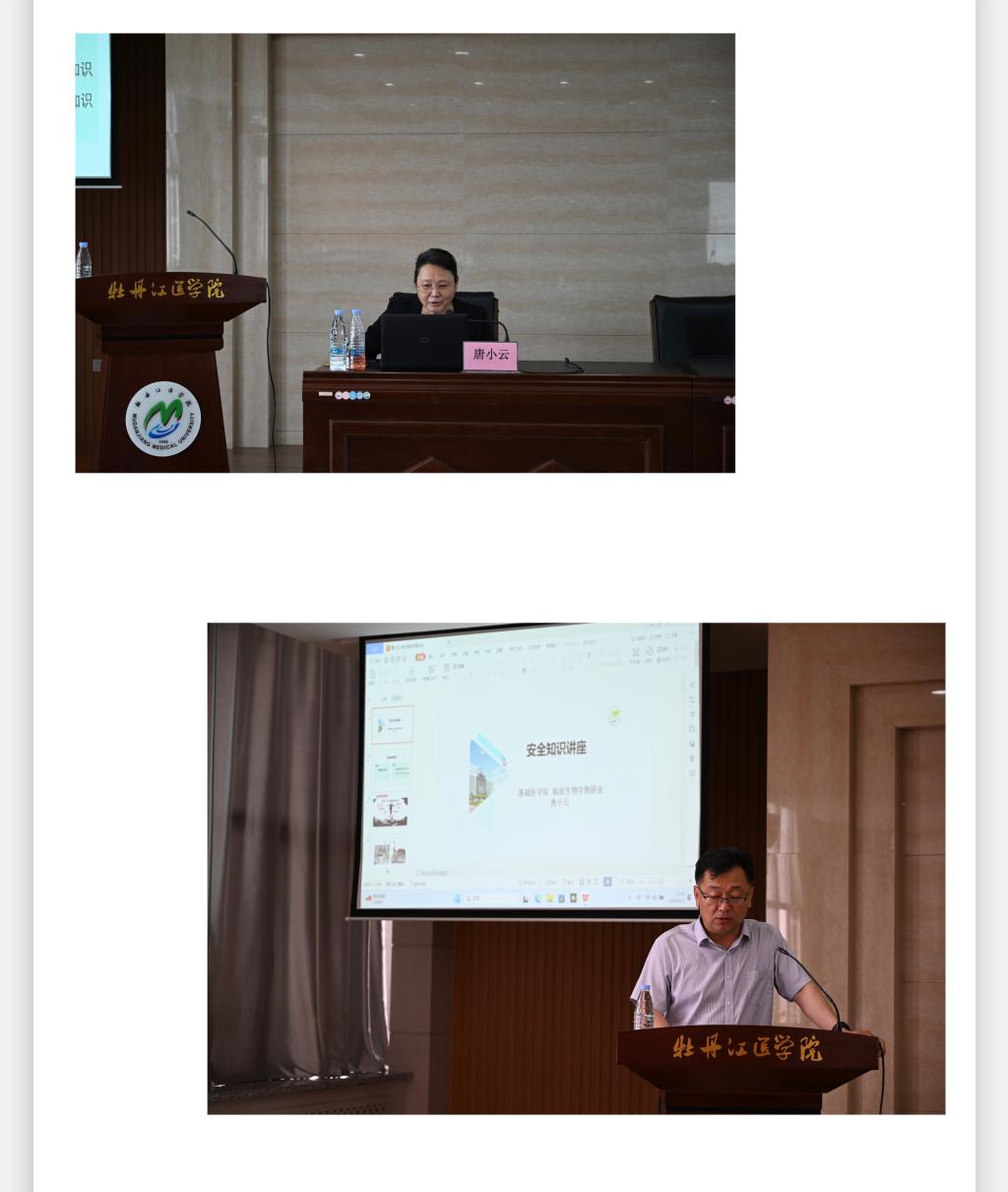 今年6月是第22个全国“安全生产月”,主题是“人人讲安全,个个会应急”。为了增加学院师生安全知识,提高安全意识,在能力作风建设“落实年”保证安全实验,营造“关注安全,关爱生命”的舆论环境和校园氛围,6月15日中午,基础医学院邀请病原生物学教研室主任唐小云教授在临床技能实训中心17楼会议室为200余名师生作了安全知识培训。