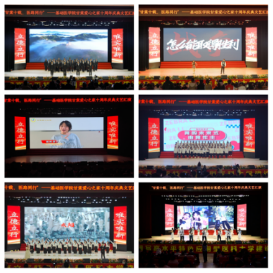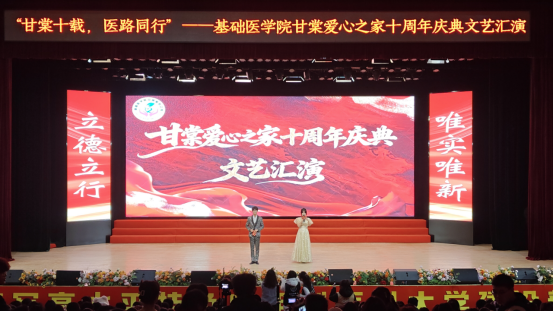 甘棠十载传大爱,医路同行谱新篇。2025年12月4日,“甘棠十载,医路同行”基础医学院甘棠爱心之家十周年文艺汇演在校园“一站式”学生社区文体馆内隆重举行。整场汇演以17个精心编排的节目呼应“甘棠”二字十七画的巧思,校内演讲与口才协会、音乐爱好者协会、青年志愿者协会及基础医学院学生会等多个社团组织鼎力协作,师生齐聚一堂,共忆十年公益征程,共话爱心传承使命,演出在热烈的掌声中完美落幕,为甘棠十年公益路写下温暖注脚。