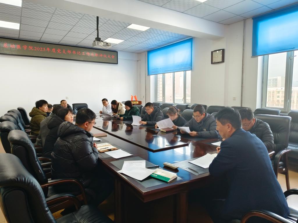 基础医学院党委按照学校要求,认真贯彻落实《关于做好2023年度党组织书记抓基层党建述职评议考核工作的通知》精神。2023年12月19日上午9时30分,在基础楼八楼会议室召开了2023年度党支部书记述职评议大会。基础医学院党政班子成员及全体党支部书记参加了会议。会议由基础医学院党委书记孙荫众主持。