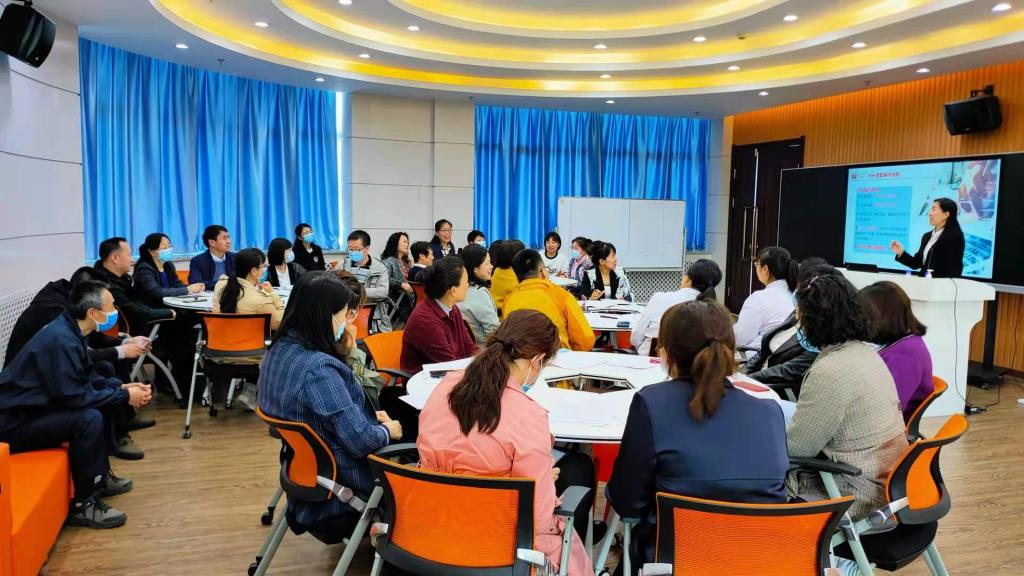 师东菊教授以《深化课堂教学改革提高人才培养质量》为主题,从本科教育的挑战与困惑、“对分课堂”的核心理念、操作流程3方面为老师们详细地介绍了“对分课堂”的教学模式和操作要领。师东菊教授强调“对分课堂”以讲授重难点为开头,以分组讨论和教师答疑为结果,将内化学习的过程贯穿始终,激发教师的教学热情,通过“亮考帮”作业引导学生认真思考,提炼学习成果,提高学生的学习兴趣。随后,参培教师分为4个小组,师东菊教授培训师团队带领教师一同体验“对分课堂”的操作流程,通过讲授—独学—讨论—对话4个环节指导在场教师就“对分课堂”进行深入学习和实践,分成小组展开讨论,老师们以实际操作体会“对分课堂”的理念,进行了现场分享和交流,老师们积极参与讨论,小组内分享成果、提炼问题,培训师团队仔细的解答了老师们的各种疑问,现场气氛热烈。