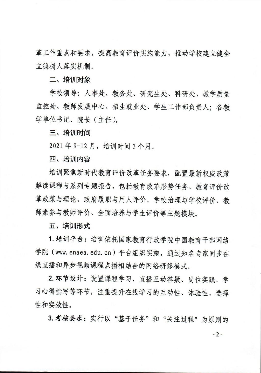 关于组织教师参加国家教育行政学院教育评价改革专题网络培训的通知