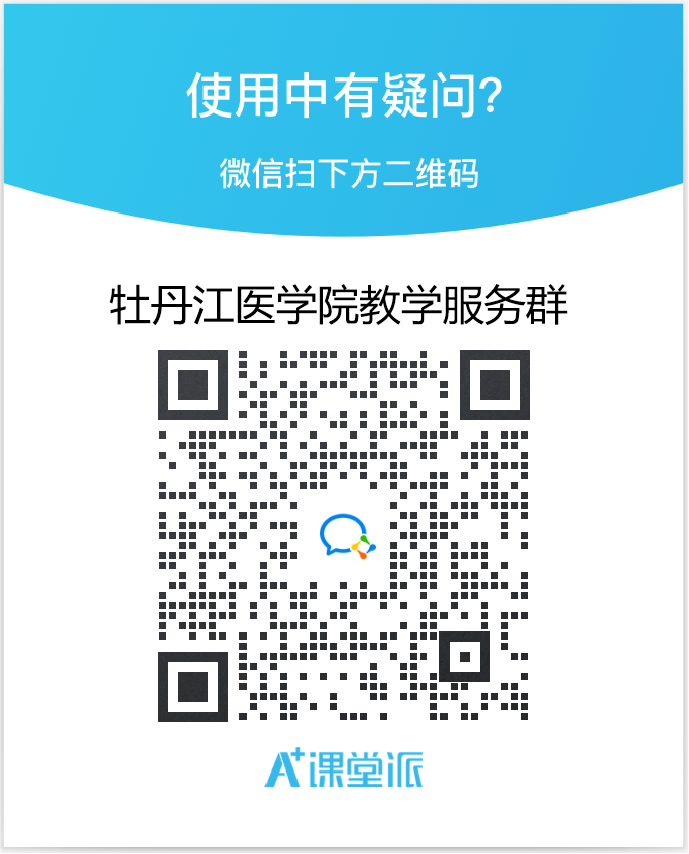 2.服务群入群方式:扫描二维码,进入“课堂派@牡丹江医学院教学服务”微信群,学习和使用过程中如果遇到疑惑与困难,可随时在里咨询,课堂派客服人员会及时给大家答疑解惑。