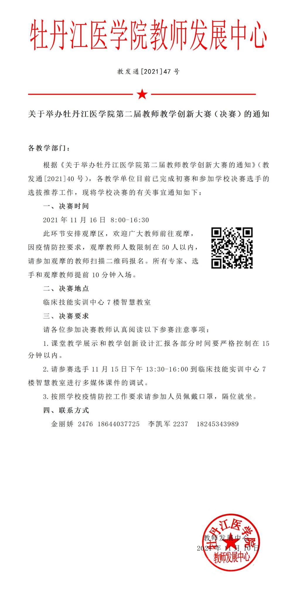 关于举办牡丹江医学院第二届教师教学创新大赛(决赛)的通知