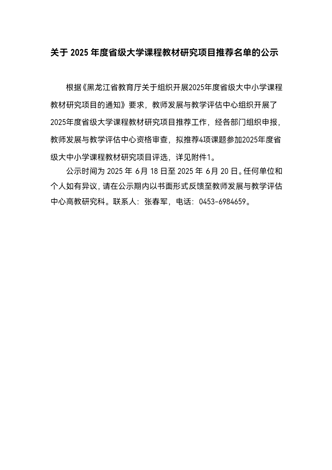 关于2025年度省级大学课程教材研究项目推荐名单的公示