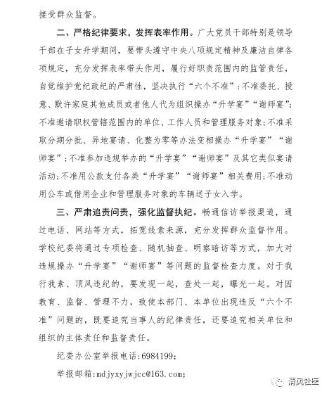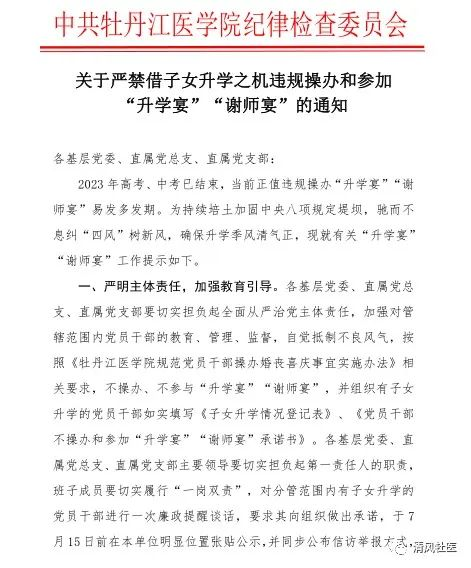 关于严禁借子女升学之机违规操办和参加“升学宴”“谢师宴”的通知