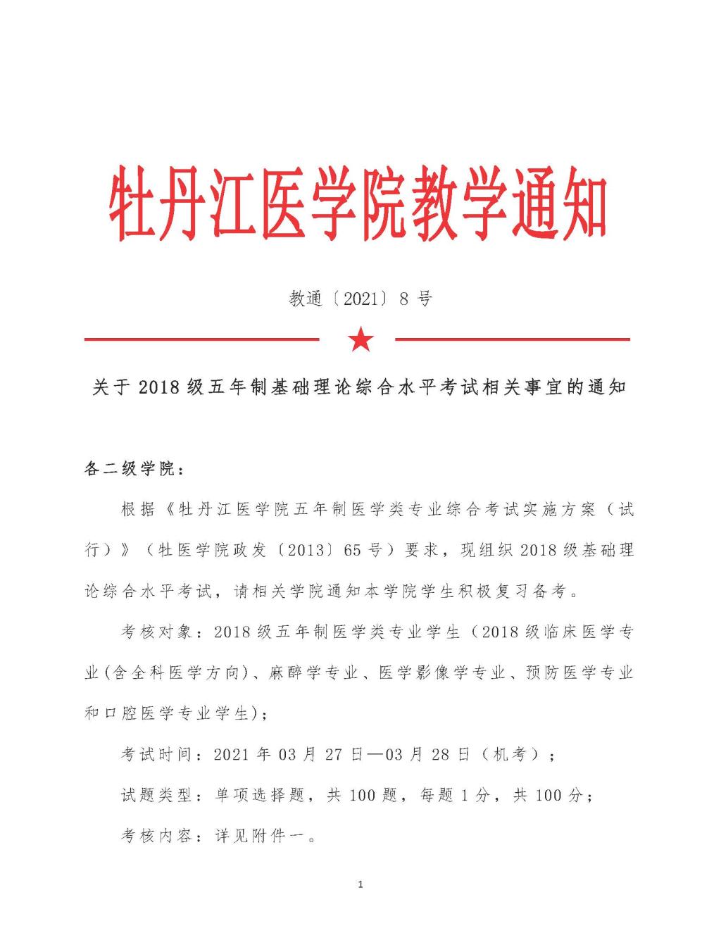 教通〔2021〕8号 关于2018级五年制基础理论综合水平考试相关事宜的通知