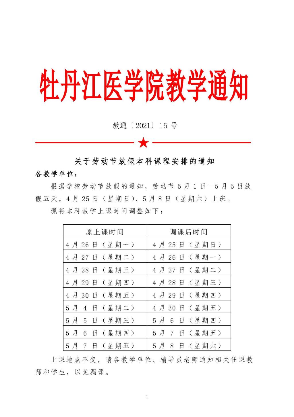 教通〔2021〕15号关于劳动节放假课程安排的通知