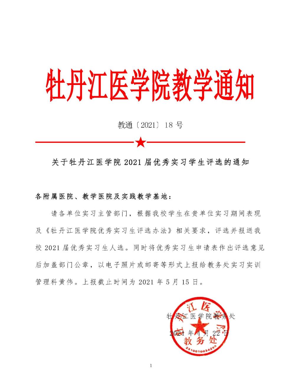 教通〔2021〕18号 关于牡丹江医学院2021届优秀实习学生评选的通知