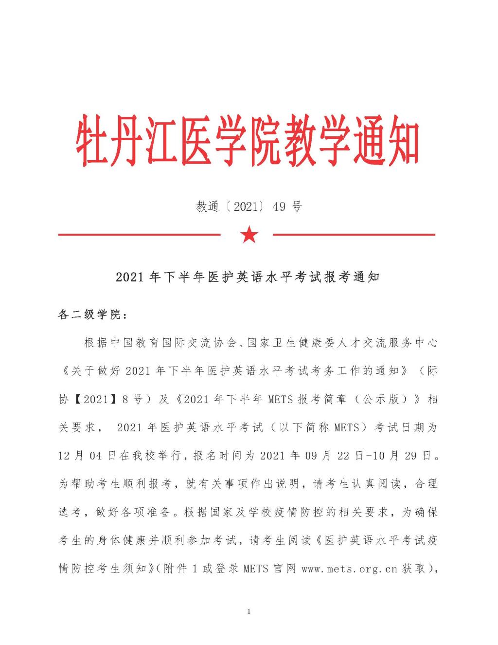 2021 年下半年医护英语水平考试报考通知