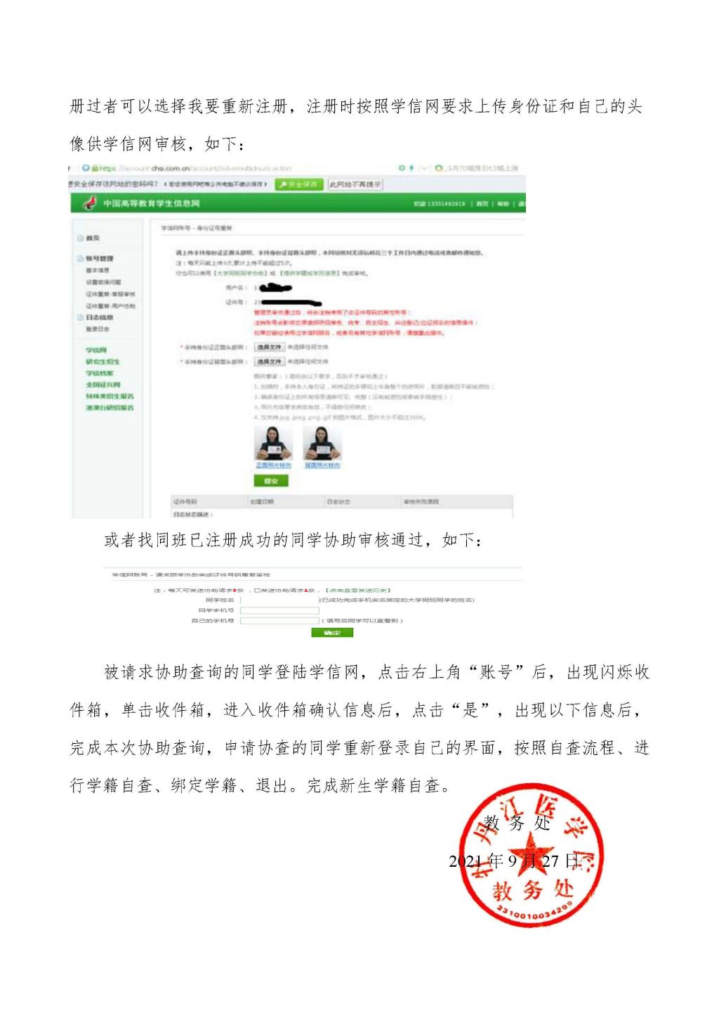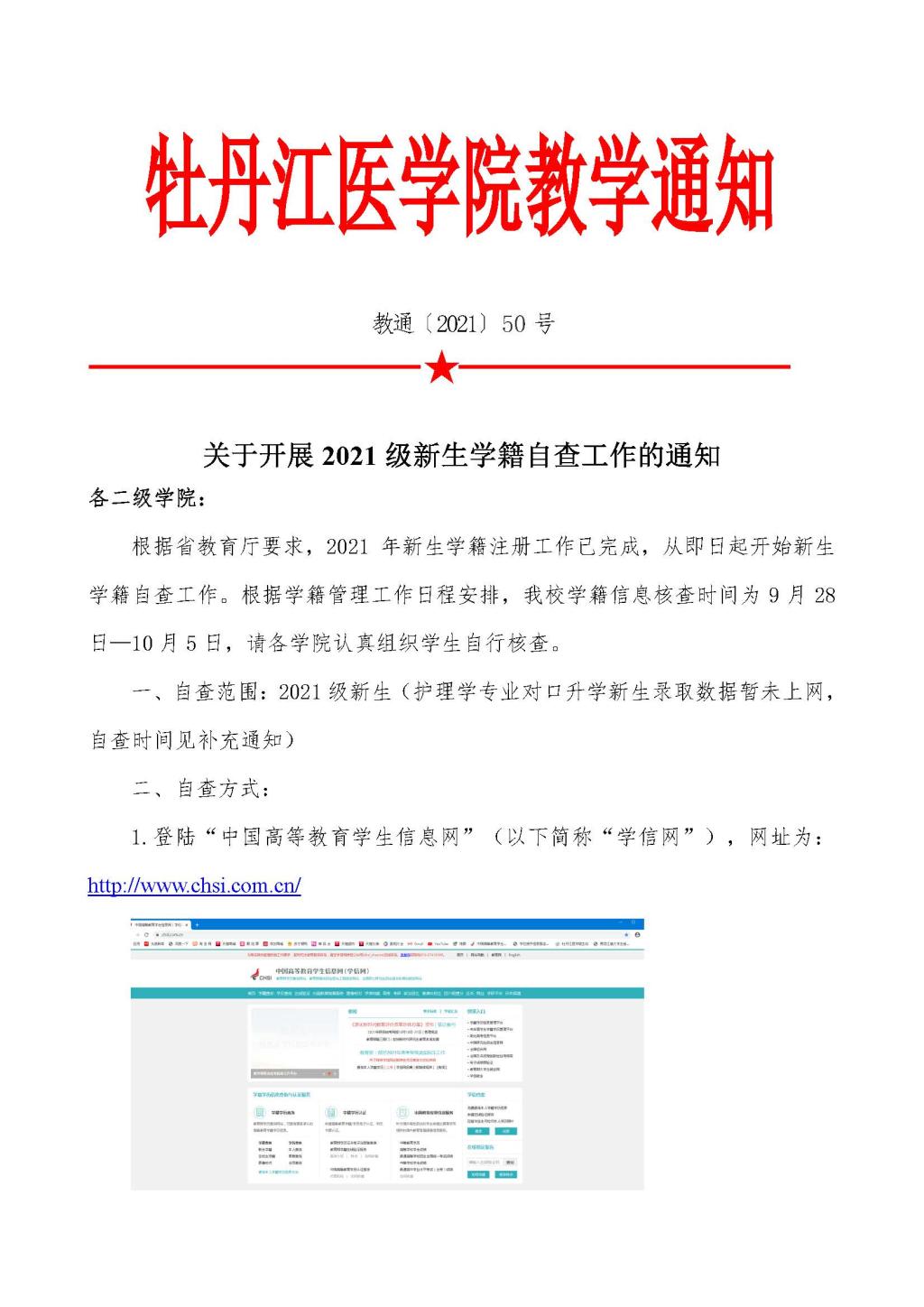 关于开展2021级新生学籍自查工作的通知