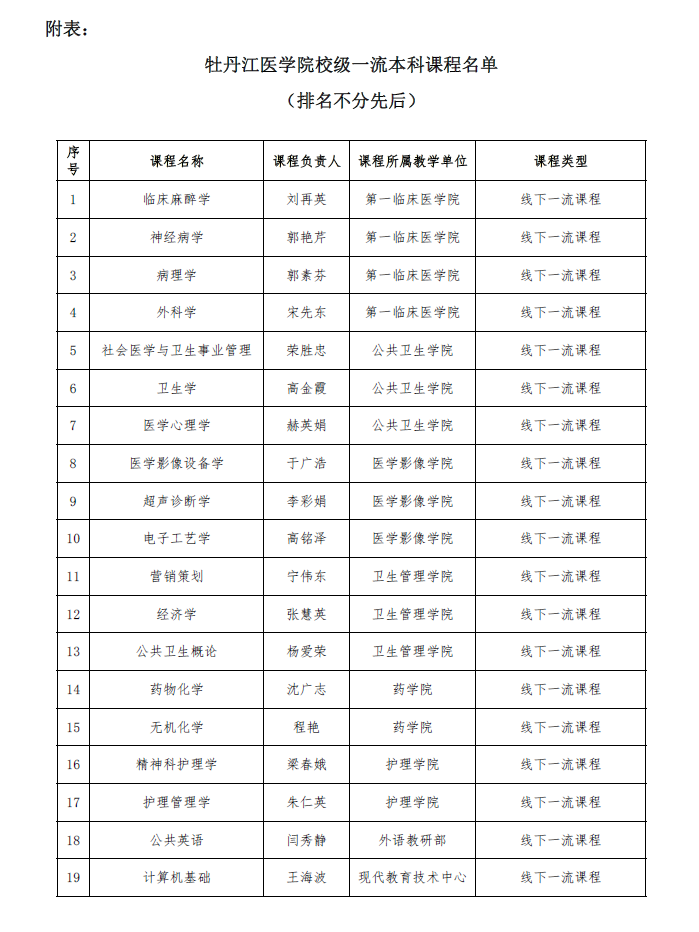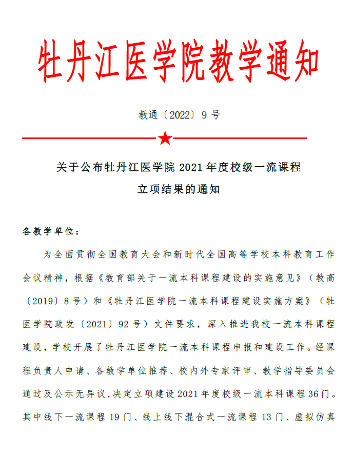 教通〔2022〕9号 关于公布牡丹江医学院2021年度校级一流课程立项结果的通知