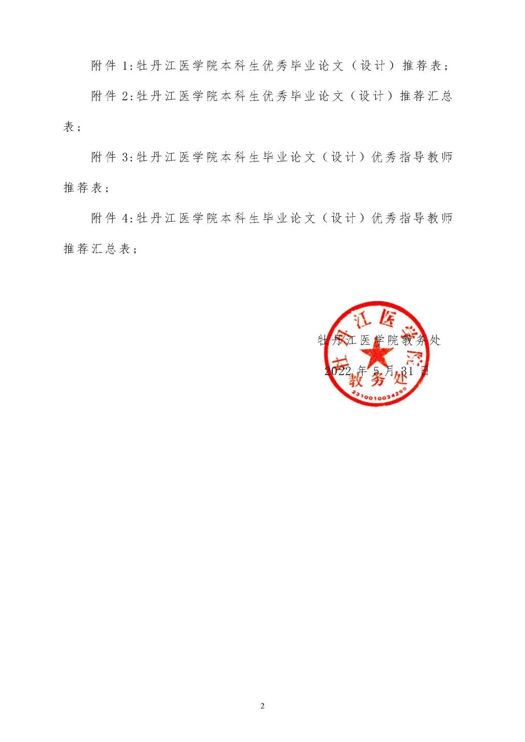 关于评选牡丹江医学院2022届本科优秀毕业论文(设计)和优秀指导教师的通知
