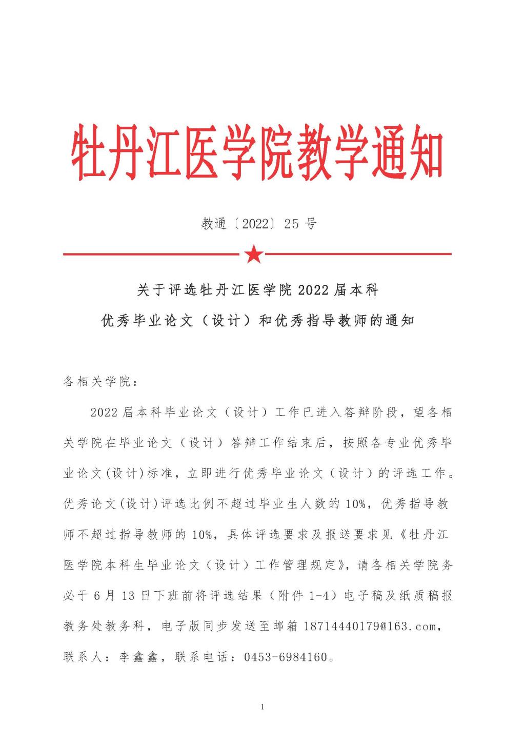 教通[2022]25号 关于评选牡丹江医学院2022届本科优秀毕业论文(设计)和优秀指导教师的通知.rar