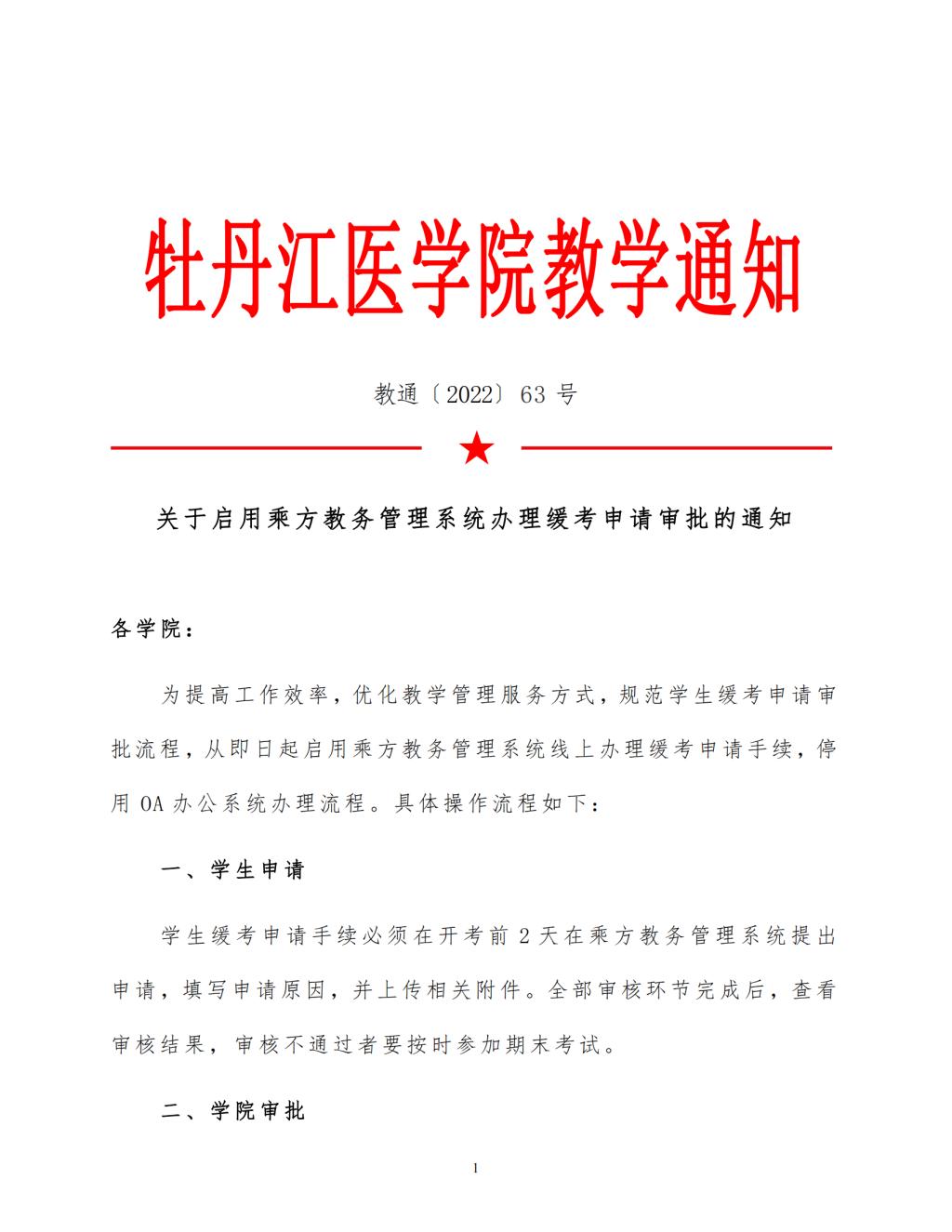 教通〔2022〕63号关于启用乘方教务管理系统办理缓考申请审批的通知