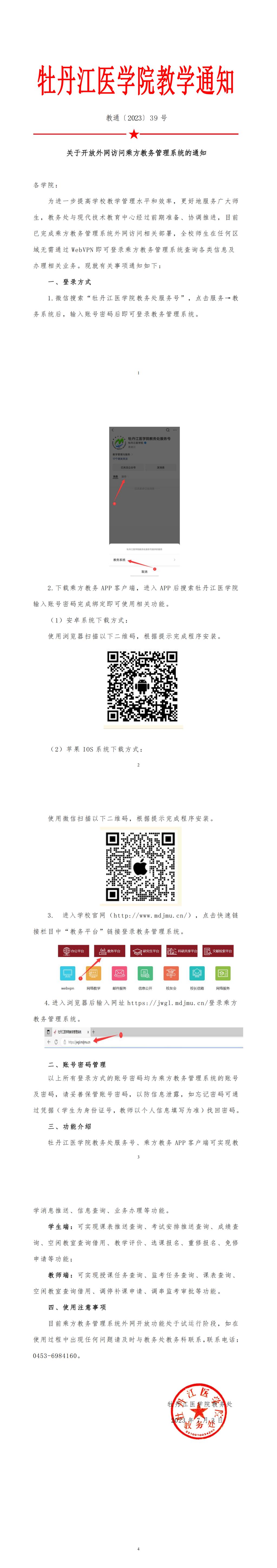 关于开放外网访问乘方教务管理系统的通知