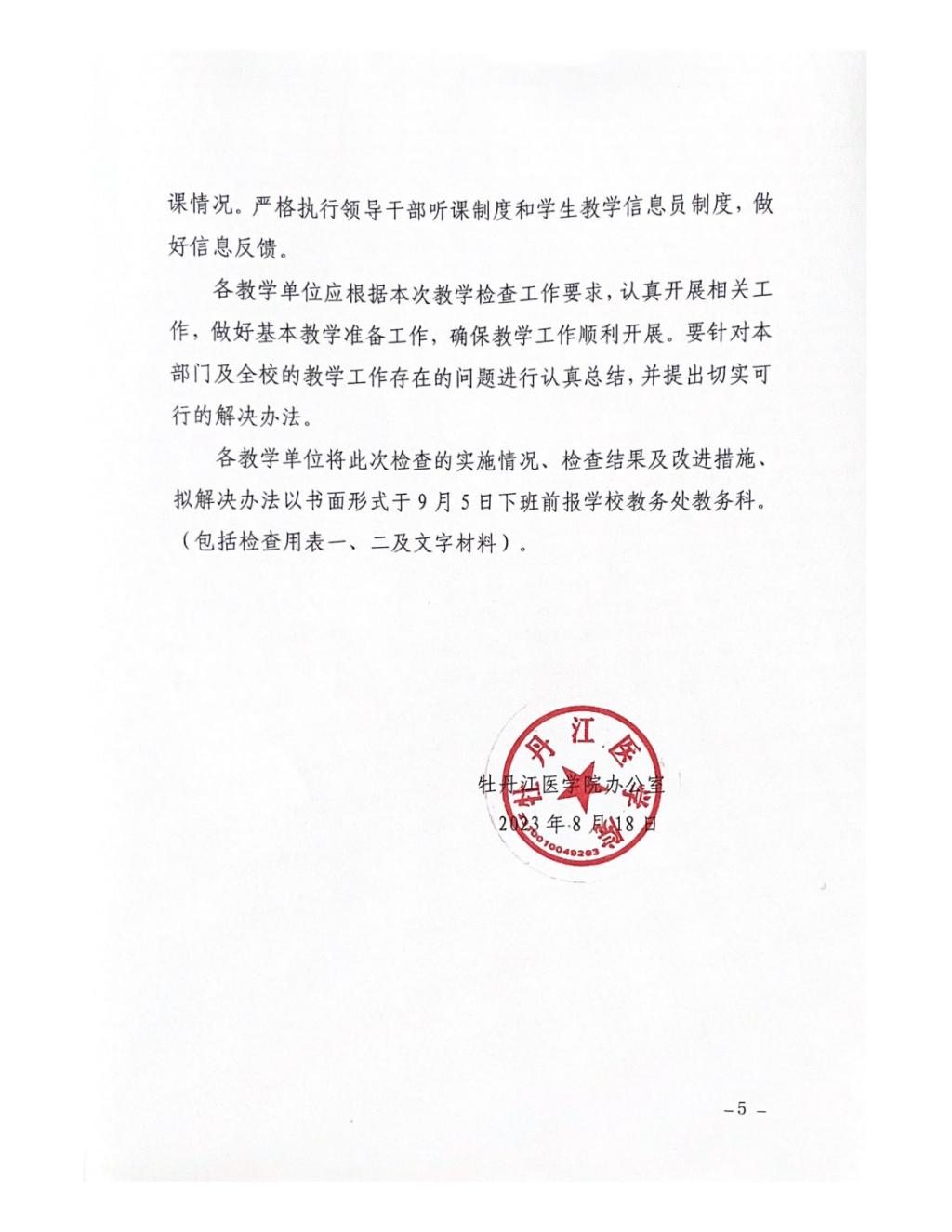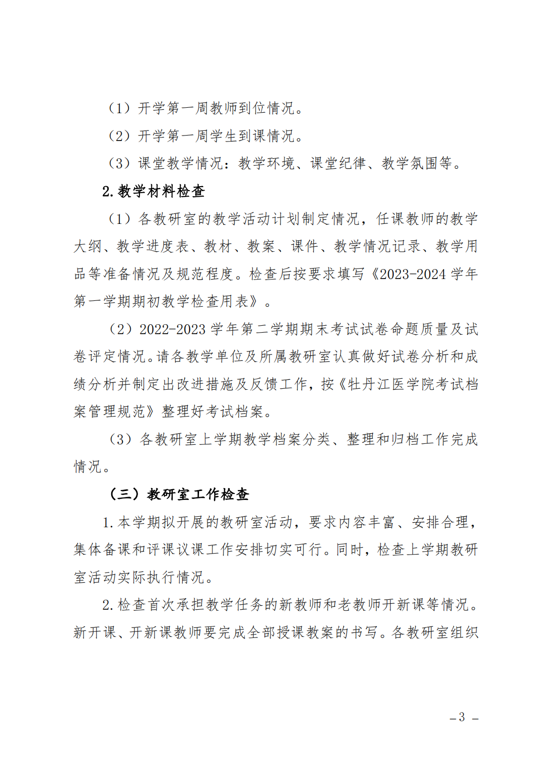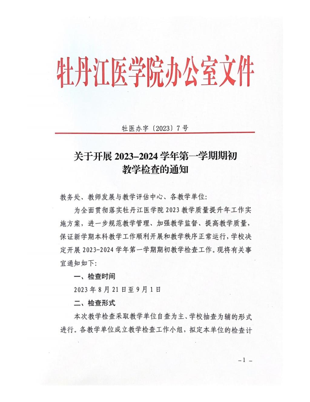 牡医办字〔2023〕7号 关于开展2023-2024学年第一学期期初教学检查的通知