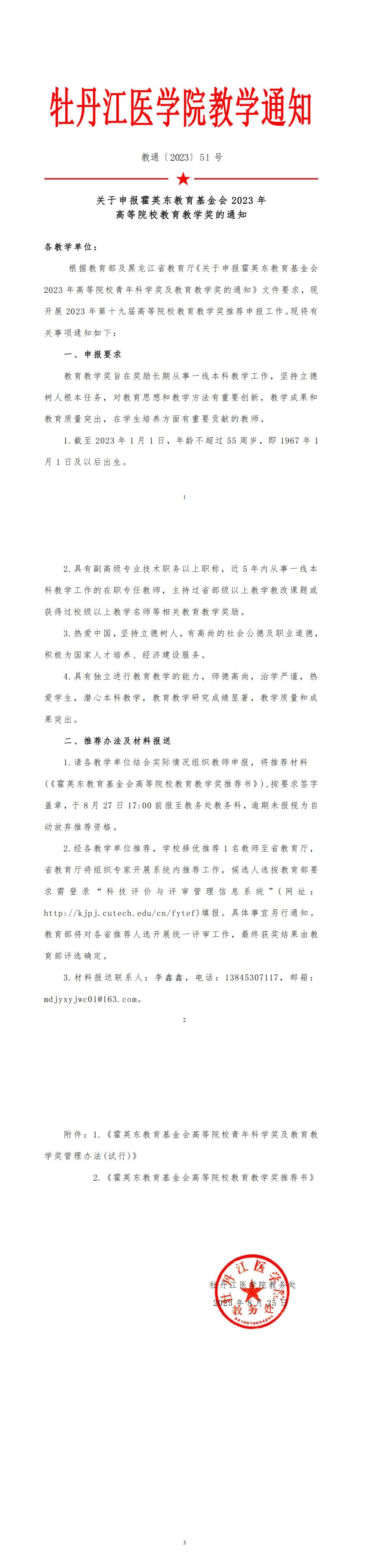 教通〔2023〕51号 关于申报霍英东教育基金会2023年高等院校教育教学奖的通知