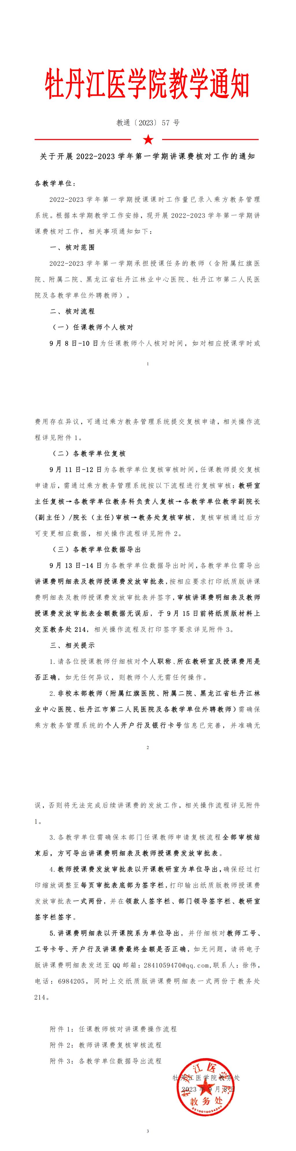 教通〔2023〕57 号 关于开展 2022-2023 学年第一学期讲课费核对工作的通知