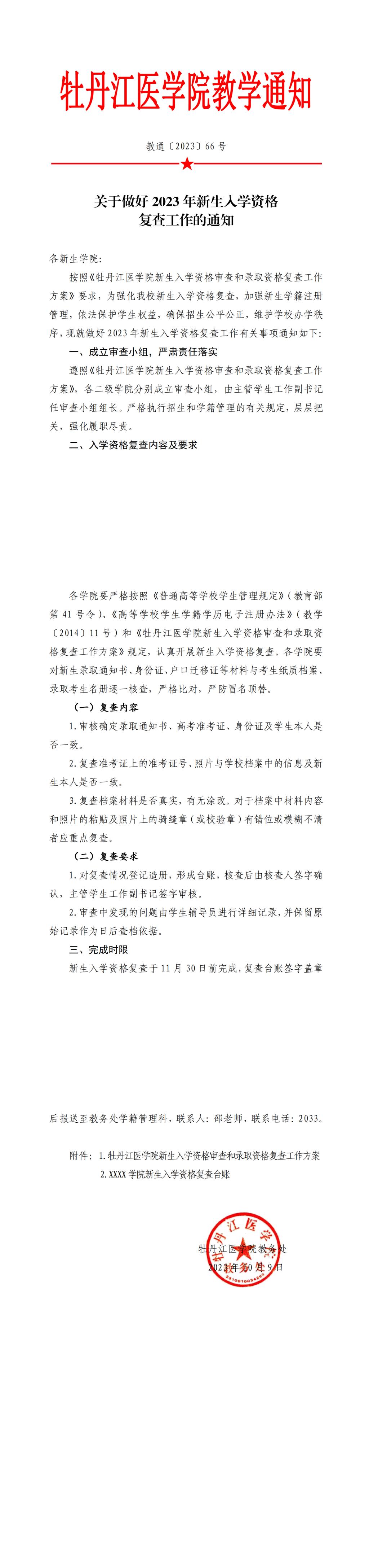 教通〔2023〕66 号 关于做好2023年新生入学资格复查工作的通知