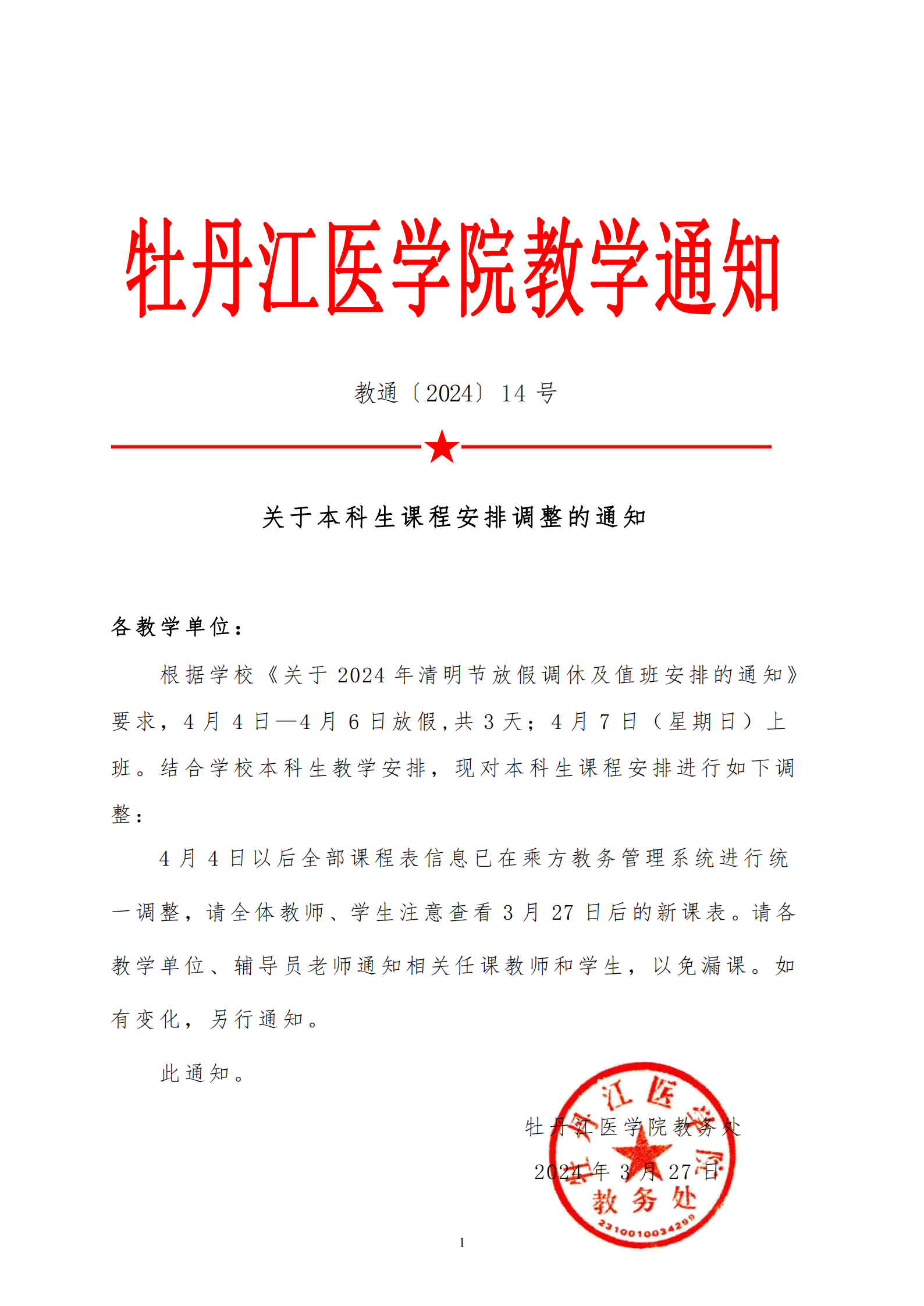 教通〔2024〕14 号 关于本科生课程安排调整的通知