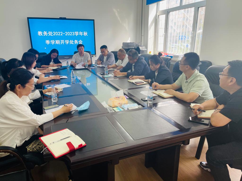 8月23日下午,教务处在办公楼二楼会议室组织召开全处新学期处务会暨迎新工作布置会,教务处各科室负责人及相关工作人员参加会议,宋高臣处长主持会议。