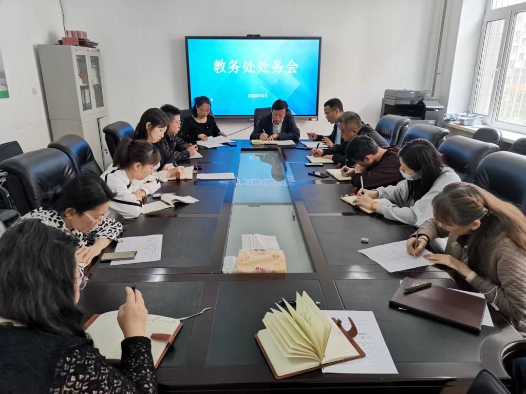 为保证教学工作的顺利进行,有序推进教育教学管理工作,切实提升教学服务水平和服务质量,根据教务处工作安排,5月26日教务处在办公楼二楼会议室召开2022-2023学年第二学期第二次处务会。教务处各科室负责人及相关工作人员参会,教务处处长宋高臣主持会议。