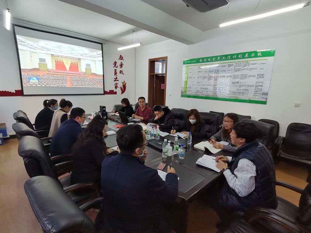 11月17日,教务处党支部组织全体党员在二楼会议室,开展了十九届六中全会精神集体学习,教务处党支部书记宋高臣领学。