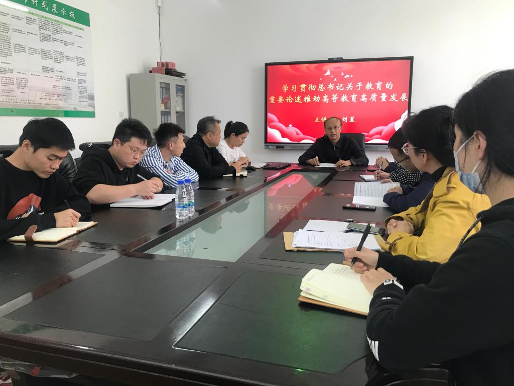刘星副校长指出,习近平总书记关于教育的重要论述系统地回答了为什么办教育,办什么样的教育,怎样办教育,为谁办教育,谁来办教育这些基本的问题,是马克思主义教育理论的丰富和发展,是党的创新理论的重要组成部分,是推动我国教育事业改革发展的根本遵循。作为教育工作者,我们要不断深化对习近平总书记关于教育的重要论述的学习研究,全面把握习近平总书记关于教育的重要论述的科学内涵和精神实质,更好地武装头脑、指导实践、推动工作。全体党员要切实提高政治站位,始终在政治上看教育干工作;要切实夯实业务根基,重实效、强实干、抓落实;要增强斗争精神,敢于从底线上提要求压责任。