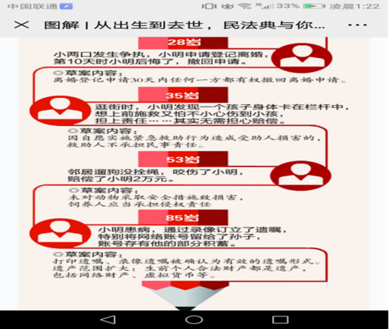 课程反思:通过“ 医疗侵权责任”的学习培养学生运用卫生法律知识分析处理相关法律问题的技能,使卫生法律走进医学生心里,使医学生养成自觉守法的意识,形成遇事找法的习惯,培养医学生解决问题靠法的意识和能力。为培养具有医药卫生管理和卫生法律创新型、复合型知识结构与实践技能的高等应用型专业人才奠定基础。“课程思政”是高等医学教育人才培养目标的需要,是思想政治工作的需要,也是专业人才培养的需要。要把“德医交融”新理念贯穿医药信息管理与服务学生思想政治教育的过程,把牡丹江医学院牡医精神(心系牡医、荣辱与共的爱校精神,坚定信念、永不放弃的执着精神,实事求是、真抓实干的求实精神,齐心协力、精诚合作的团队精神,)融入学生的血液中。以培养提高学生的思想政治素质,培养“德医双馨”的人才。