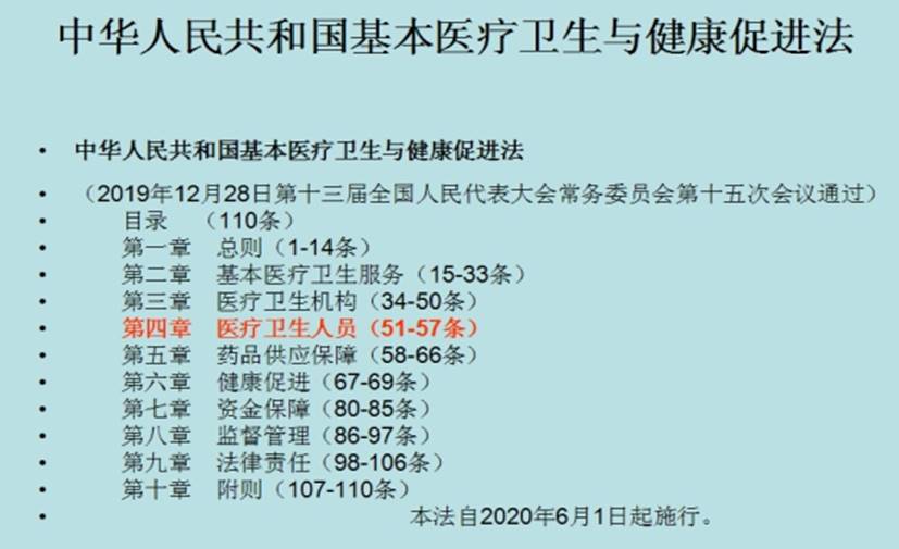 1.《中华人民共和国执业医师法》1998年6月26日,九届全国人大常委会第三次会议通过了《中华人民共和国执业医师法》,并于1999年5月1日起施行。