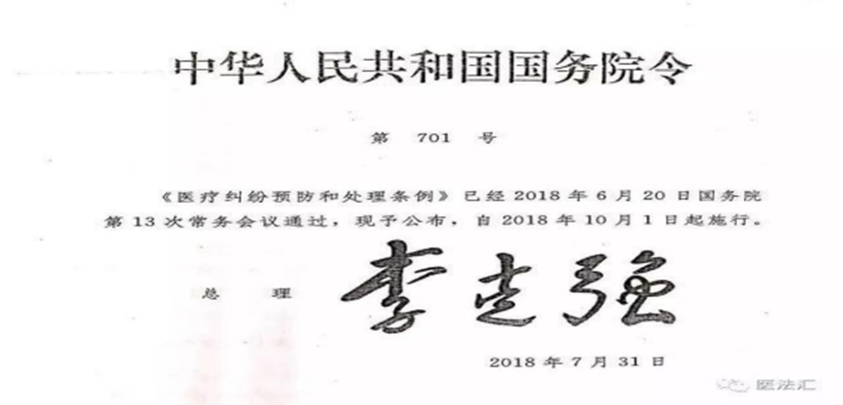 4.《医疗纠纷预防和处理条例》2018年6月20日国务院第13次常委会通过,2018年10月1日起施行